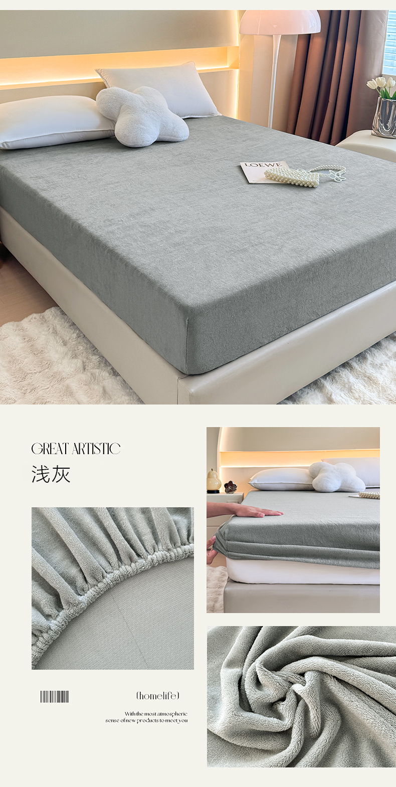 商品名称:金盛纺 2024新款牛奶绒纯色单床笠 浅灰