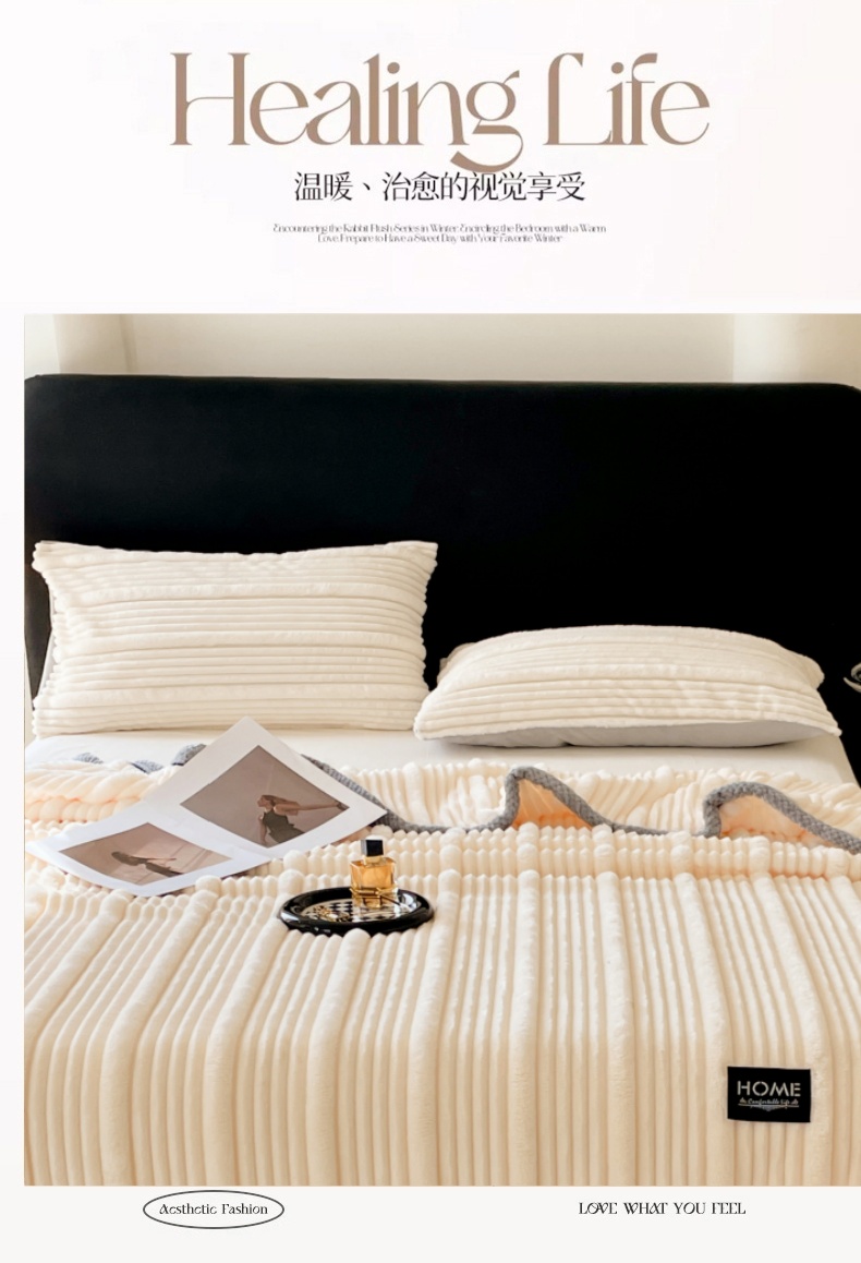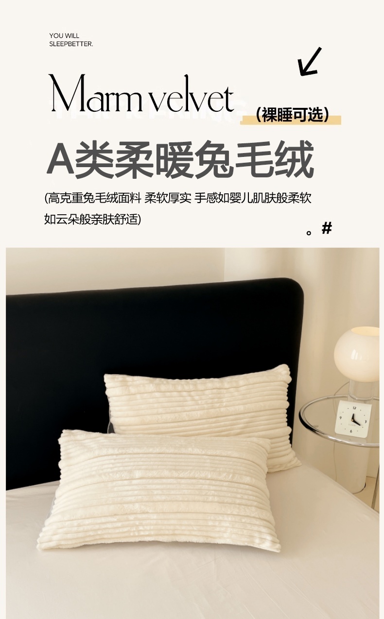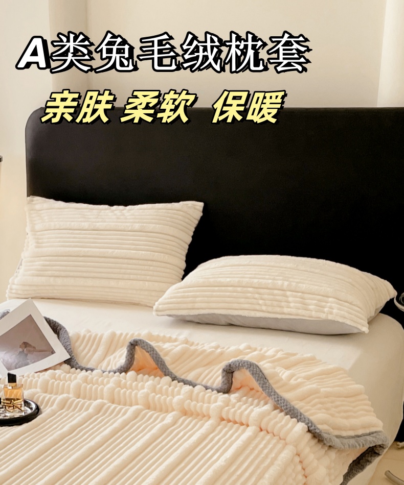 商品名称:梦舒羽 2025新款兔毛绒子母条枕套 本白