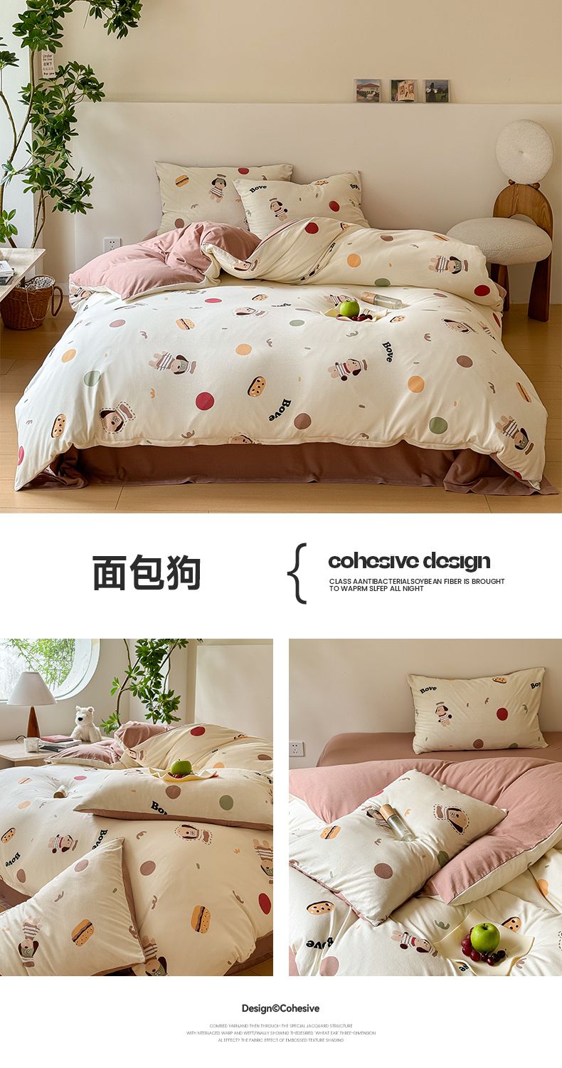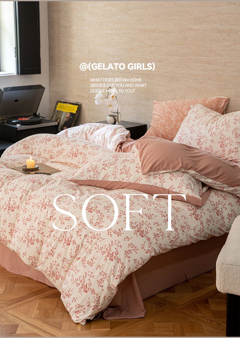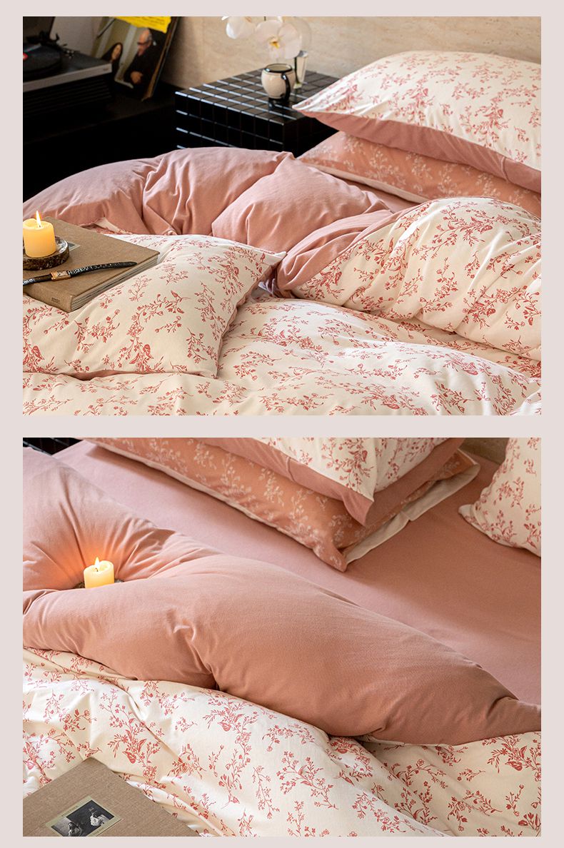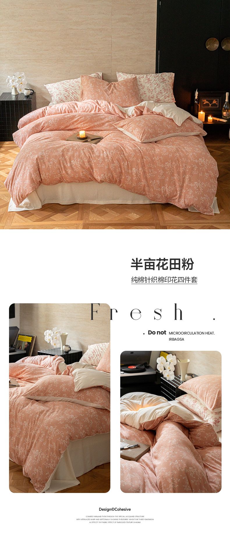 (总)华超针织 2025新款亲肤舒适全棉纯棉针织五件套四件套,奶糖+樱桃,杏粉+花田,杏灰+玫瑰