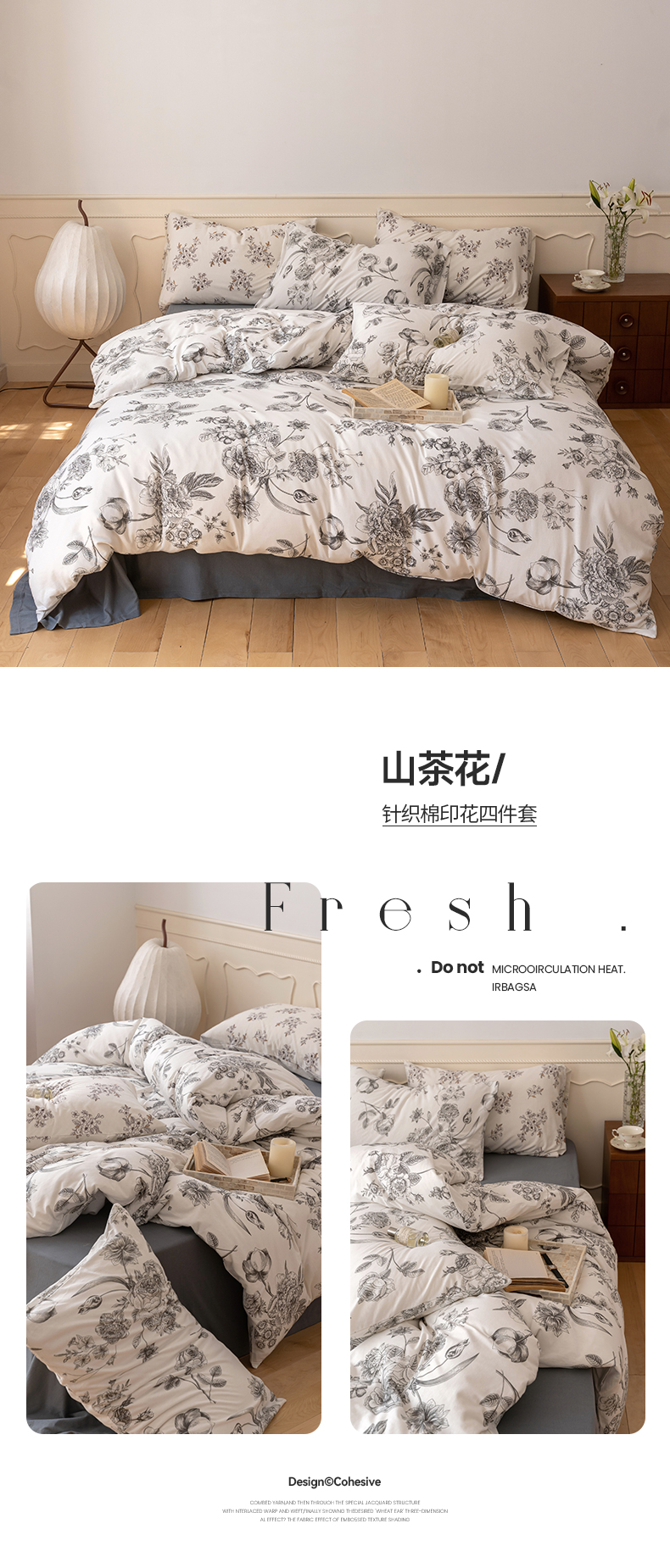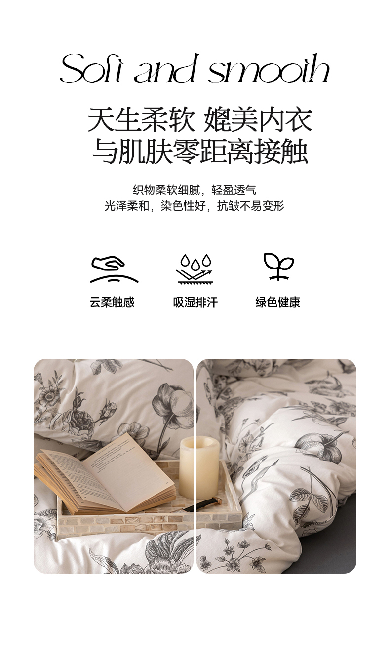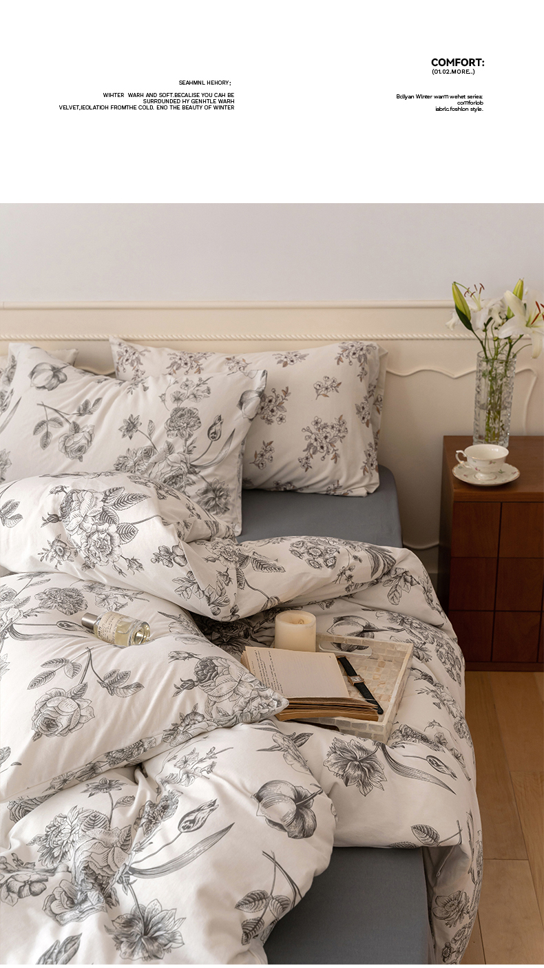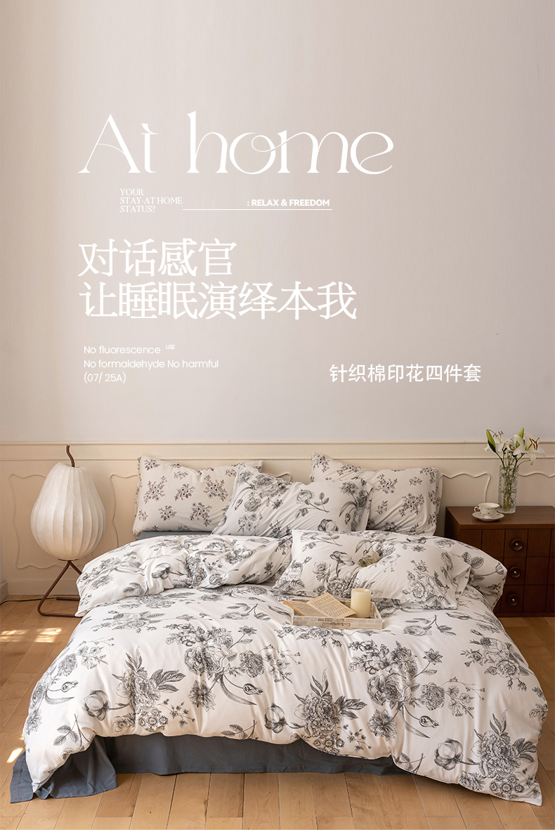当前位置: 91家纺网 > 商品网购 > 床品套件 > 四件套 > 全棉普通四件套 > 华超针织 2024新款全棉天竺棉印花四件套系列 山茶花