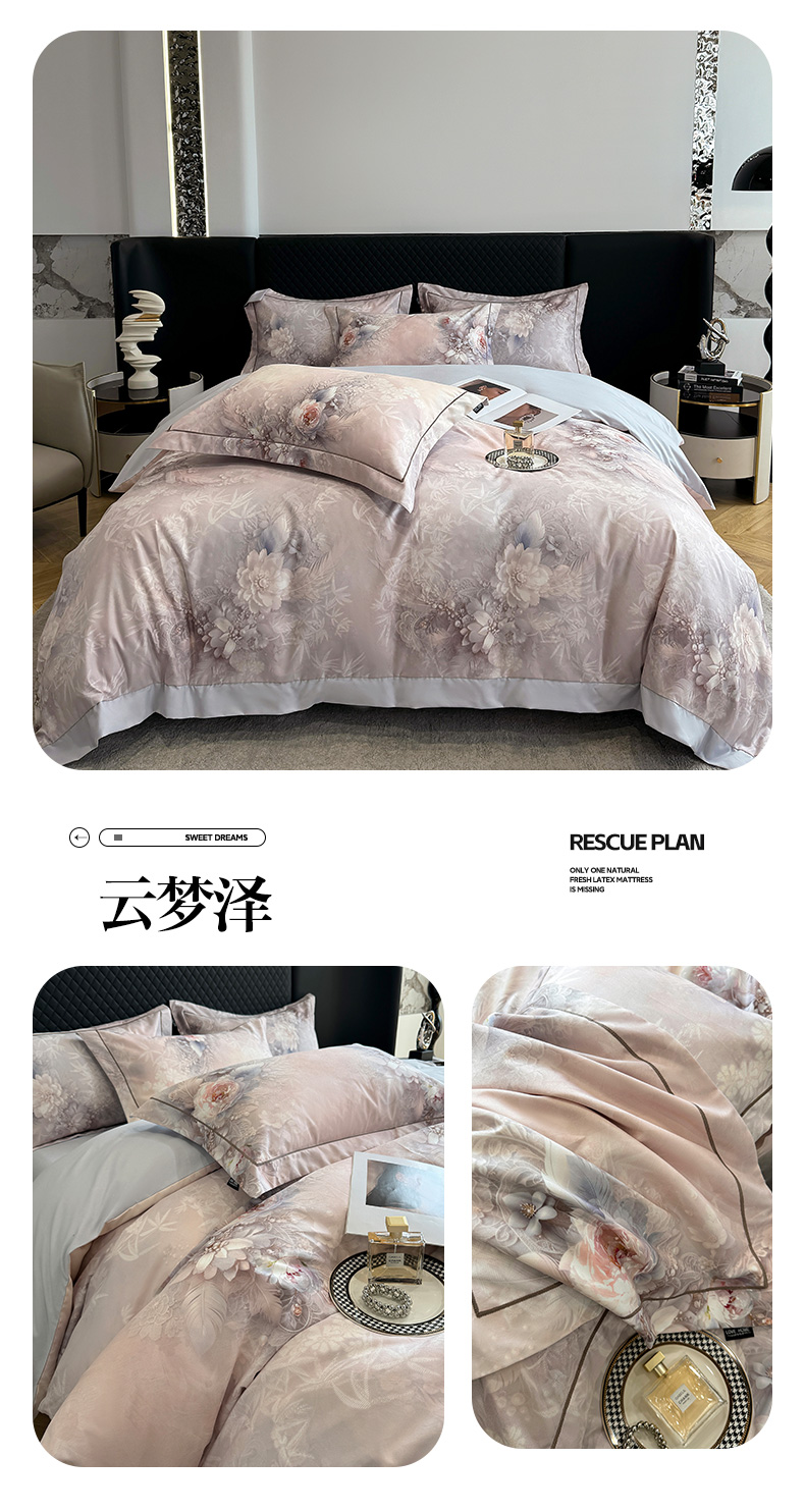 (总)棠颂家纺 2025新款法式锦棉缎数码印花四件套,风月,霓裳