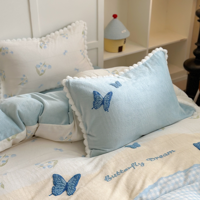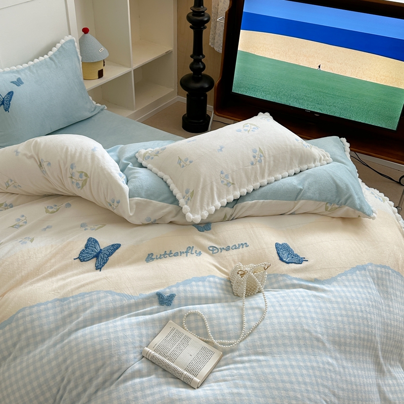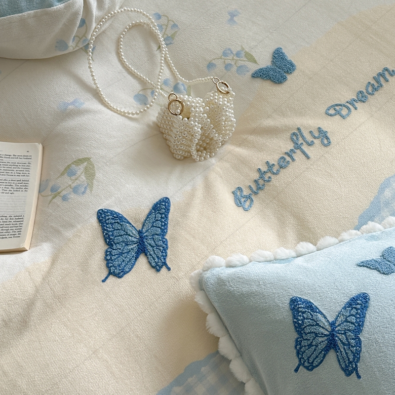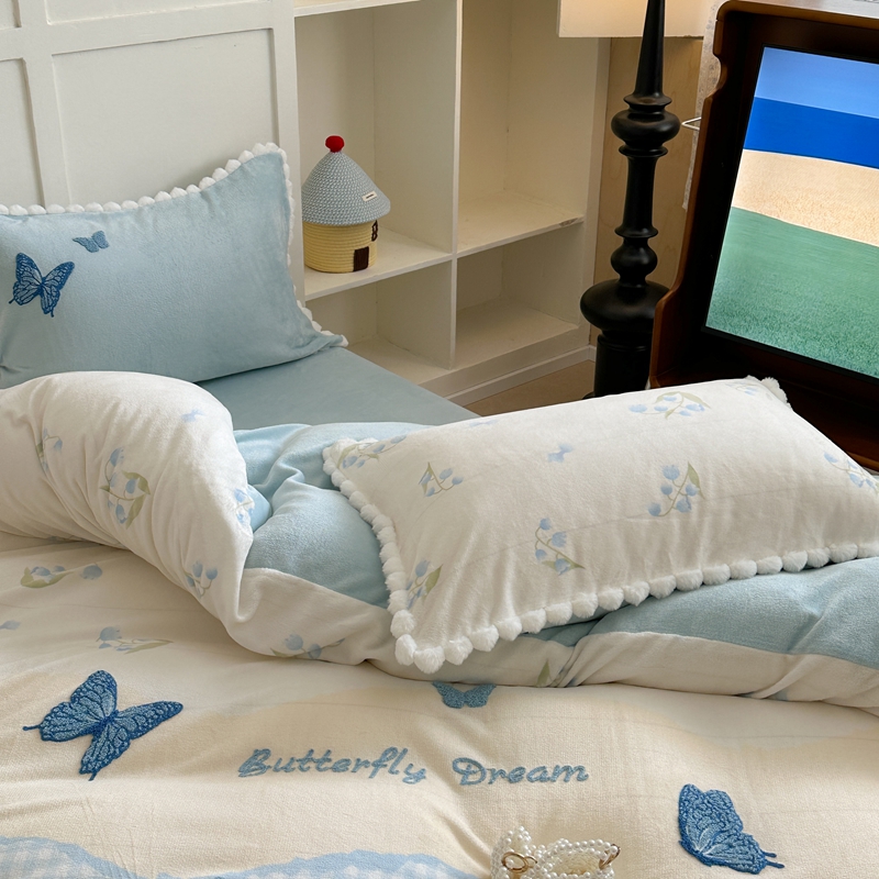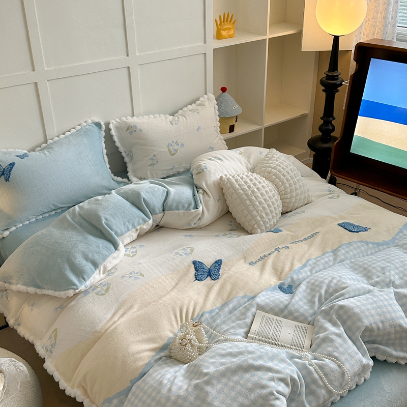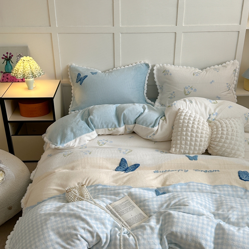 柚子YOUTH 2024新款毛球花边三拼牛奶绒四件套 铃兰蝴蝶