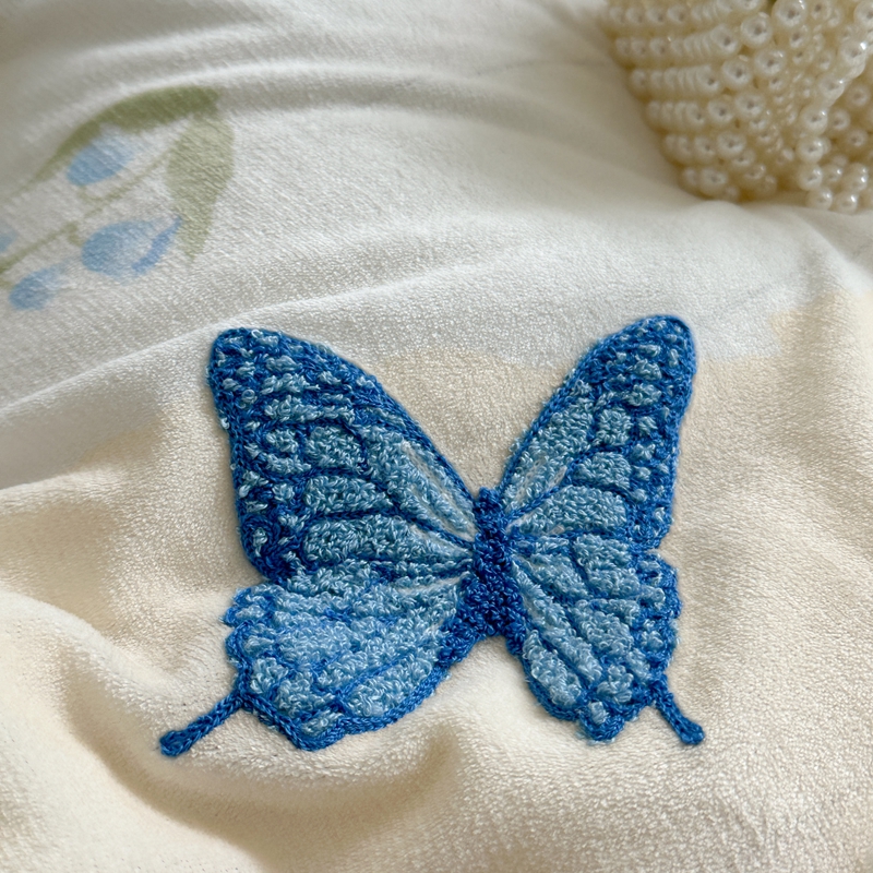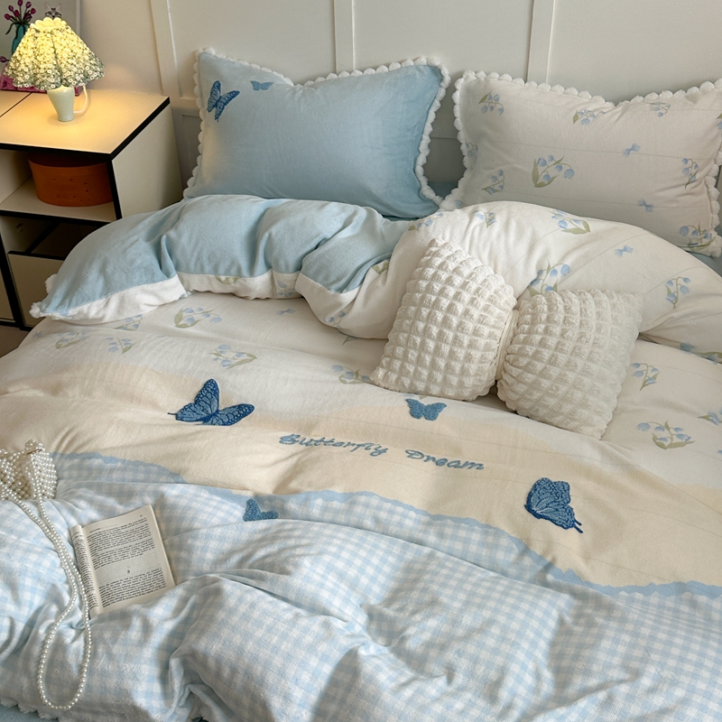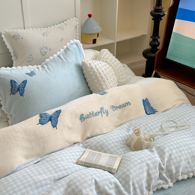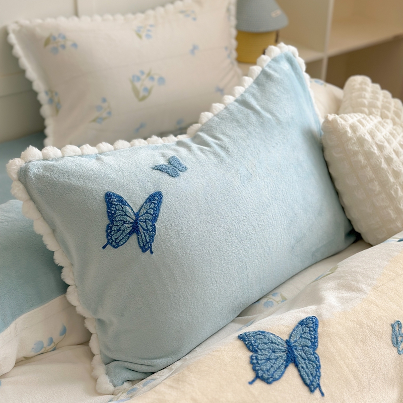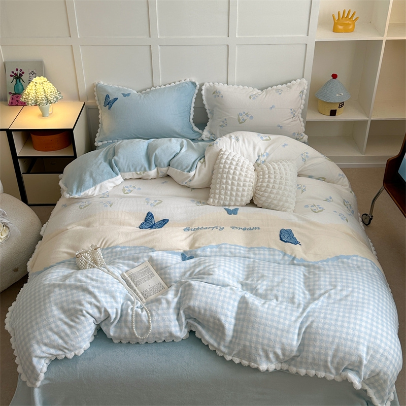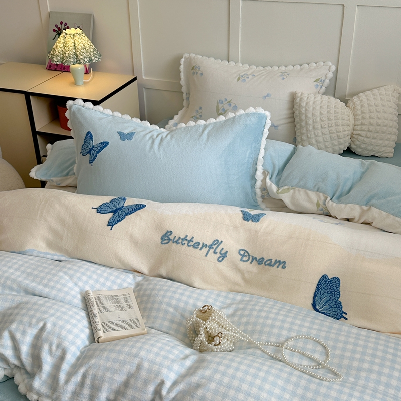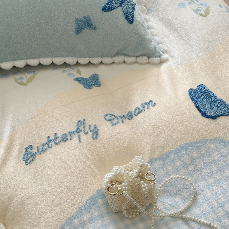 柚子YOUTH 2024新款毛球花边三拼牛奶绒四件套 铃兰蝴蝶