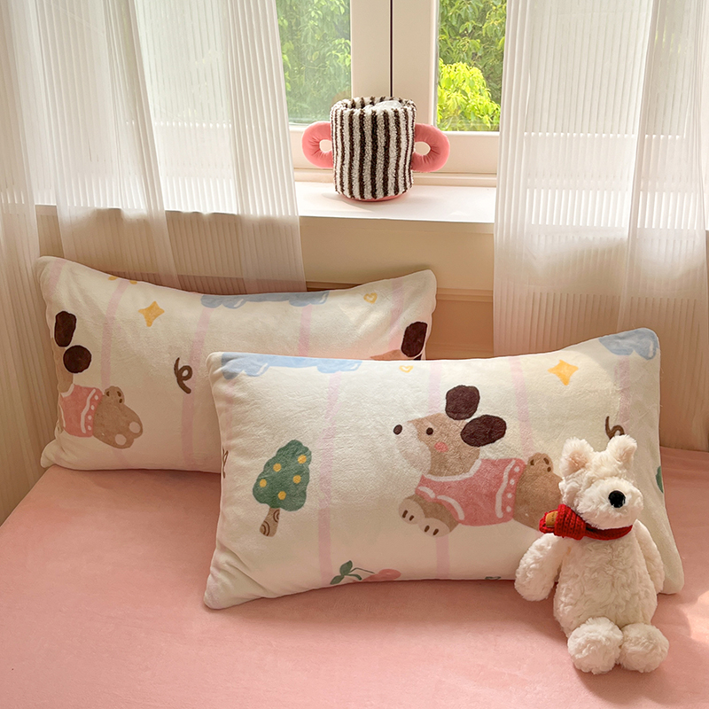 798家纺 2025新款牛奶绒印花四件套单品系列-单枕套 牛奶绒-小木马