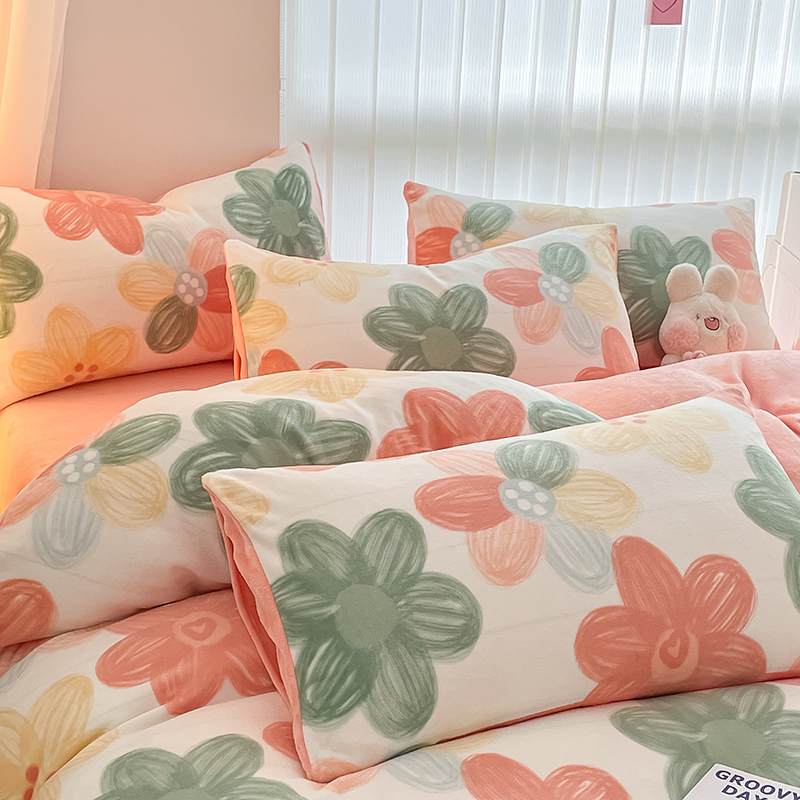 (总)798家纺 2025新款全棉130*70印花四件套-青春治愈系列,镜中花,半夏花语,黑白相间,蝴蝶小熊,花园奇遇,兔子花园,熊宝,叶魅,郁金香紫