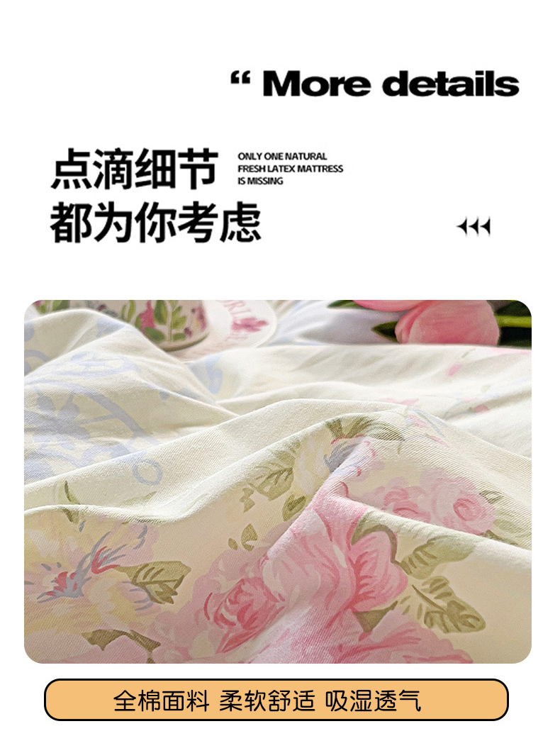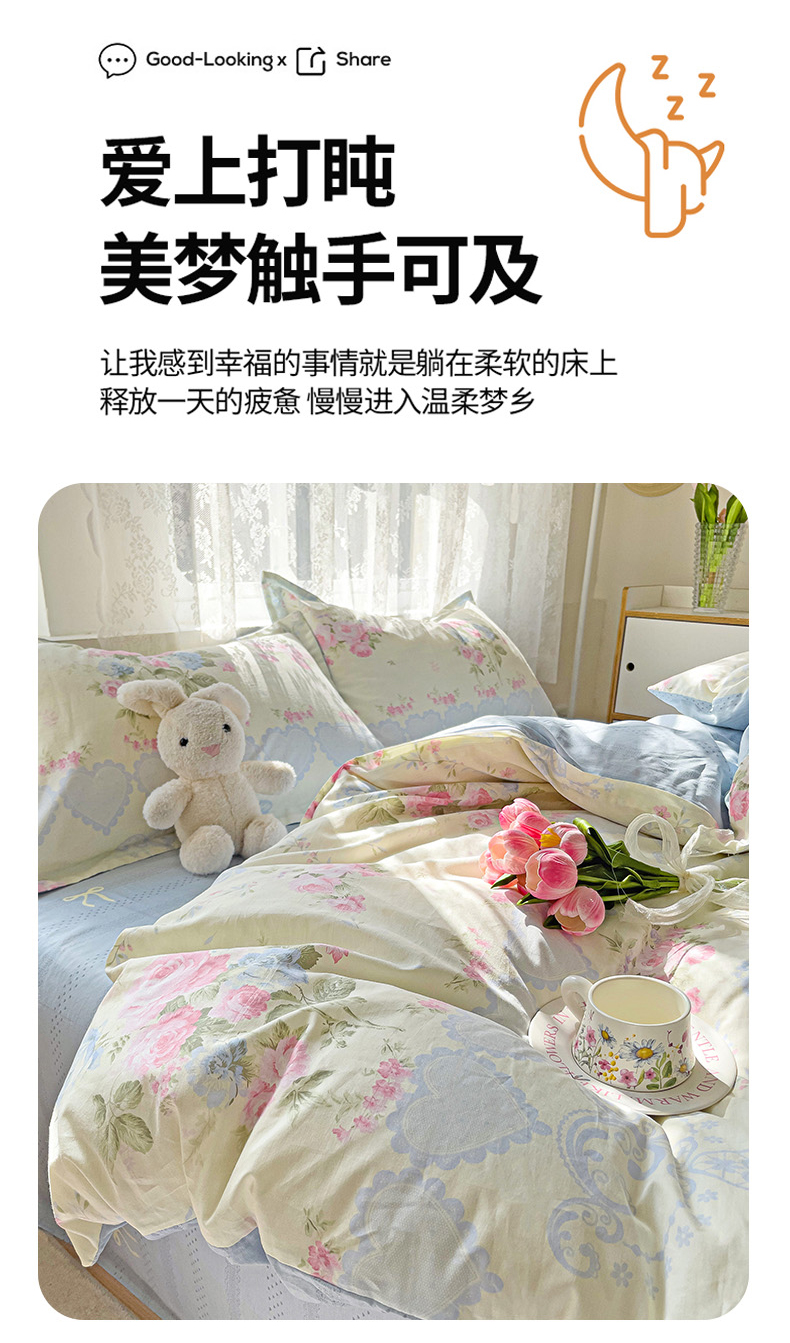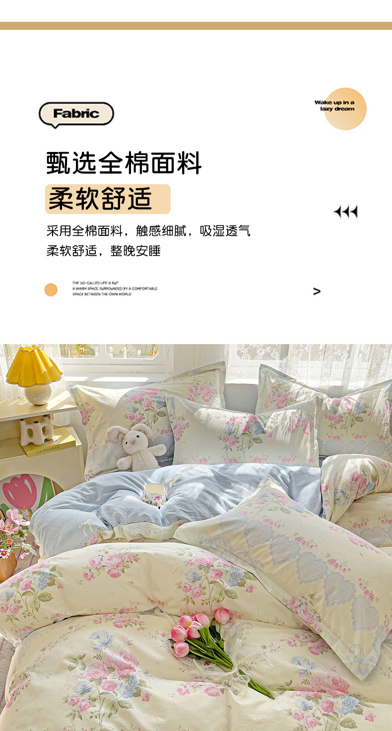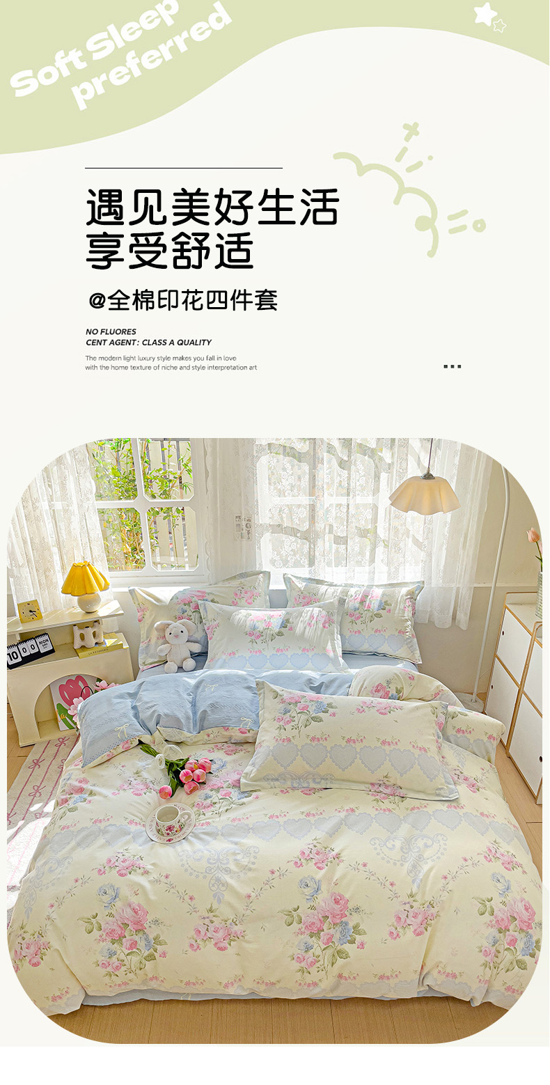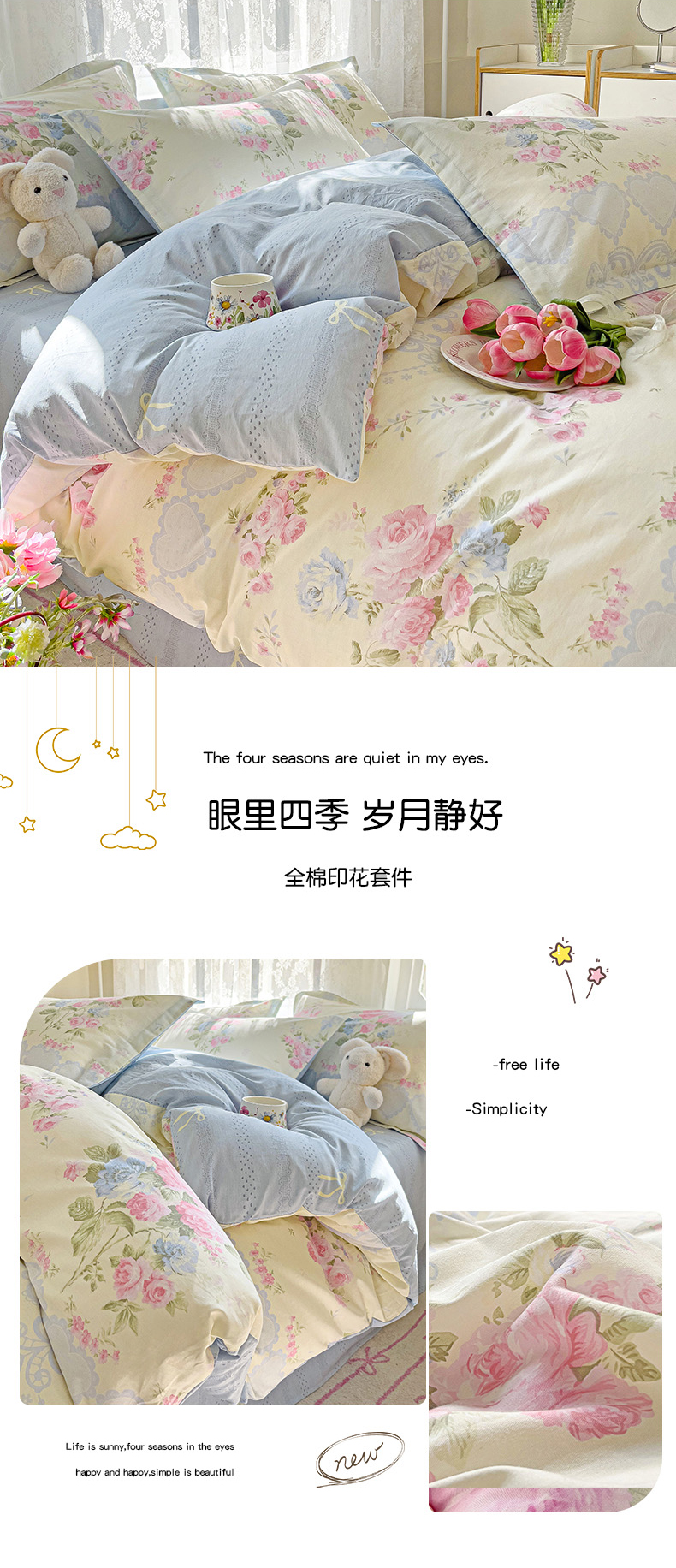 商品名称:优选良品 2025新款直播爆款全棉-ins印花系列四件套纯棉三件套床单床笠花语悠然