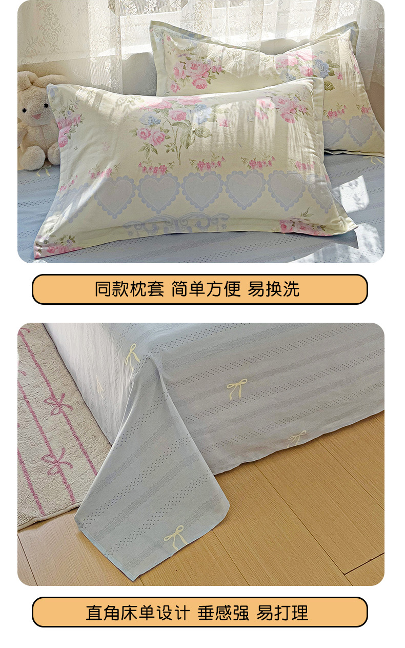 (总) 2025新款母婴级ins小清新双层纱印花床笠床垫保护罩枕套三件套,爱心,春朵,蝶梦,酣春,华梦,绮梦,素锦,复古浪漫,蝴蝶谷,蝴蝶结-蓝,蝴蝶结-紫,恋曲,梦露,晚风逐梦,微甜