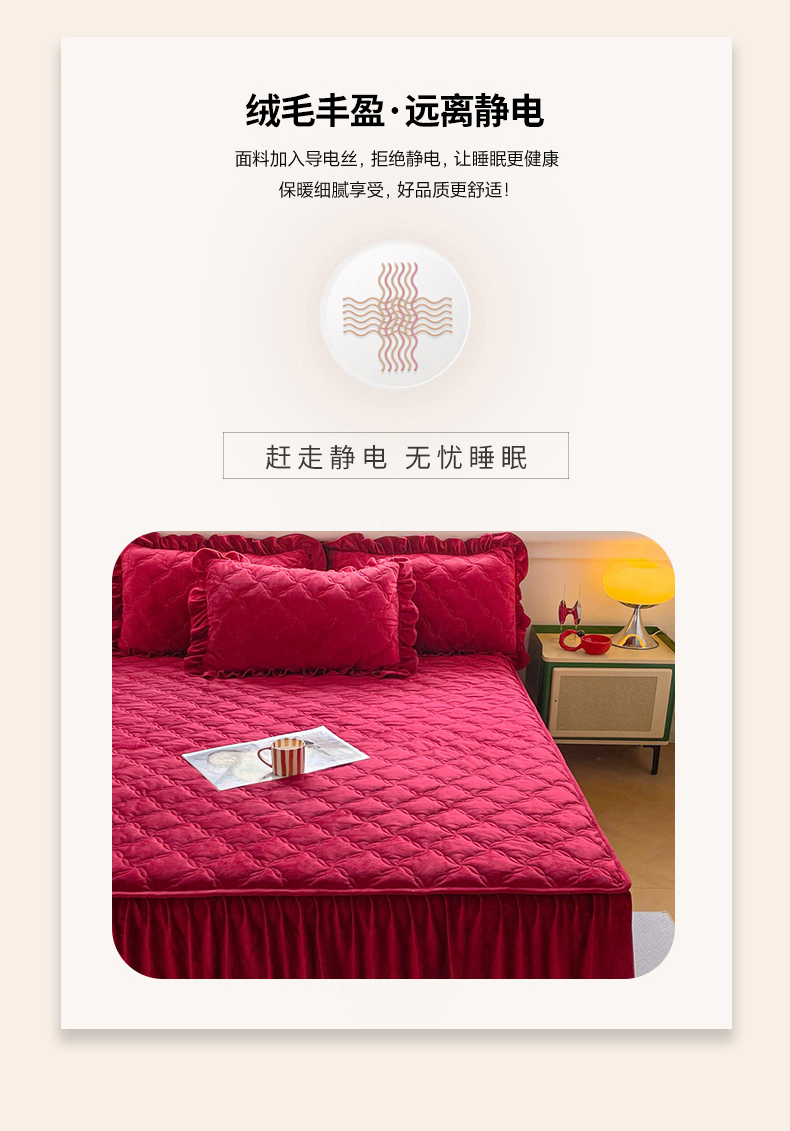 商品名称:忘忧草 2024新款宝宝绒夹棉床裙-优雅 优雅-亮酒红