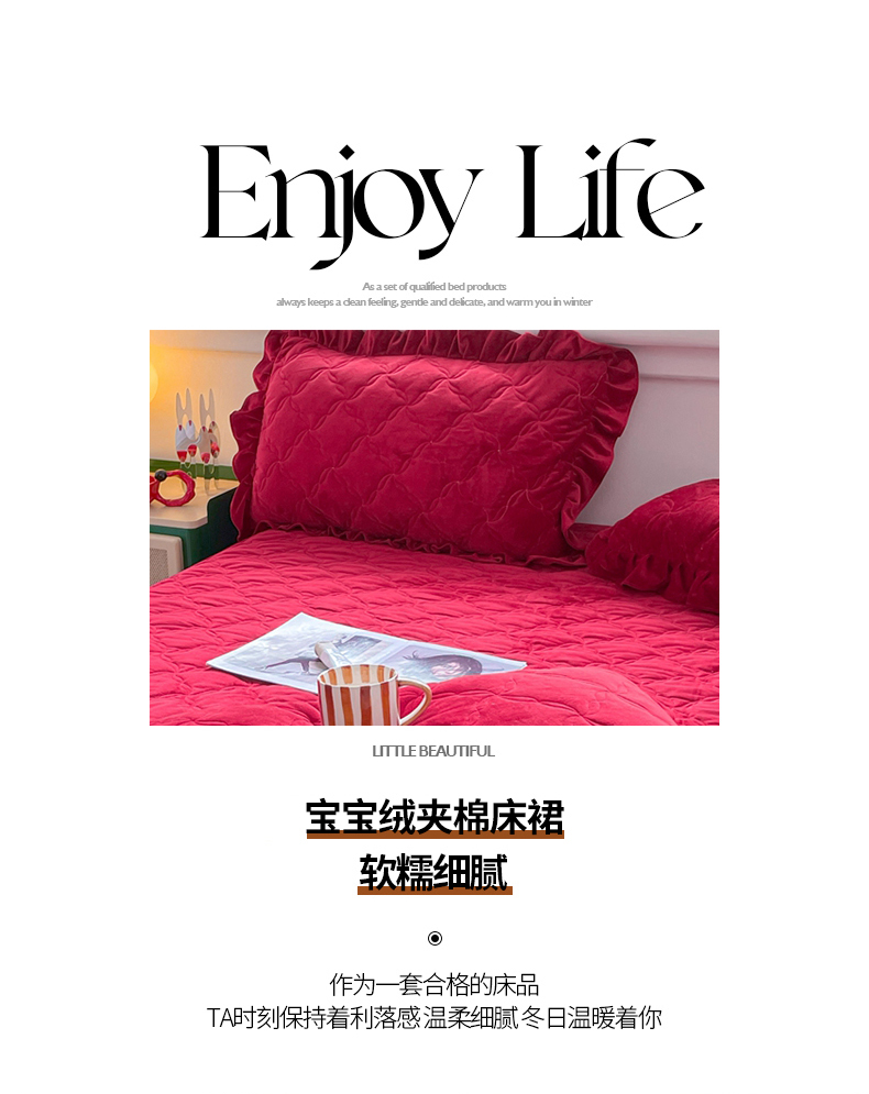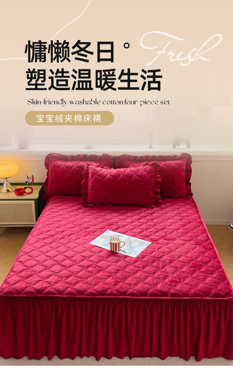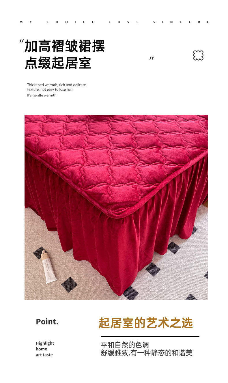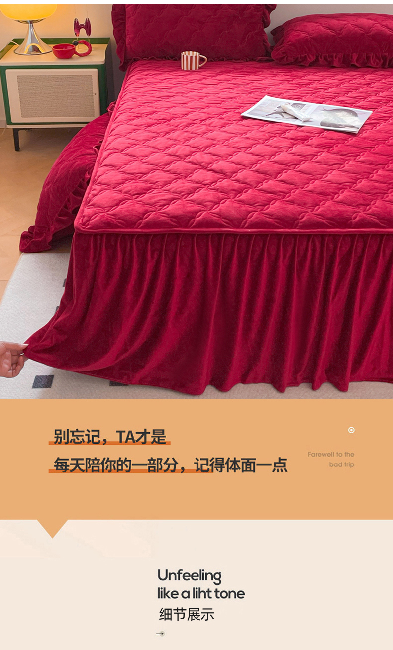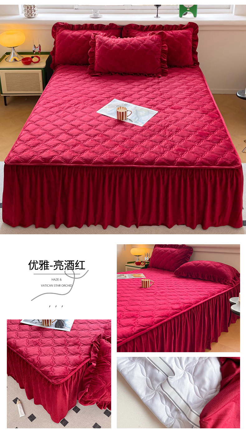 忘忧草 2024新款宝宝绒夹棉床裙-优雅 优雅-亮酒红