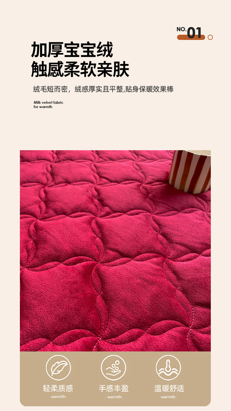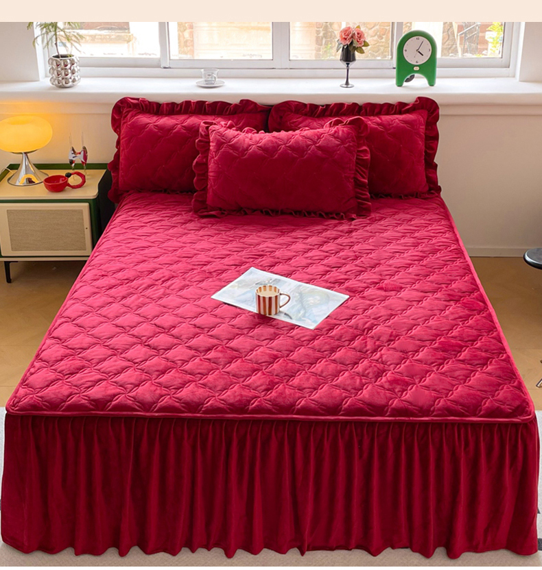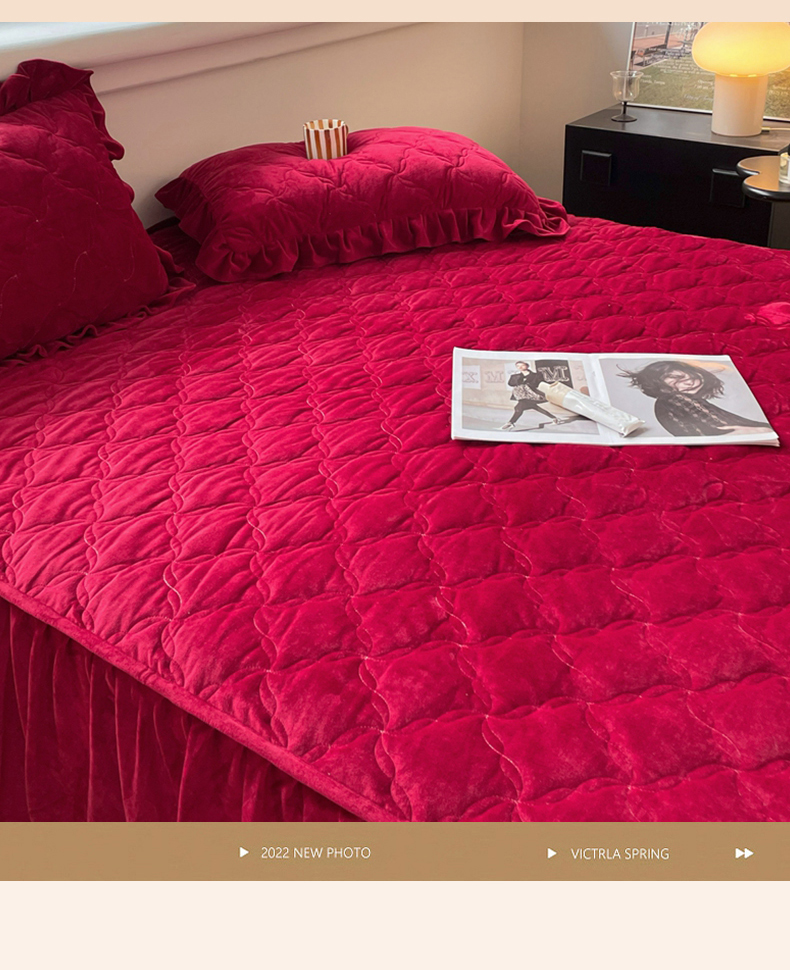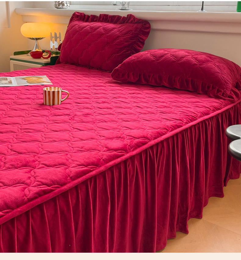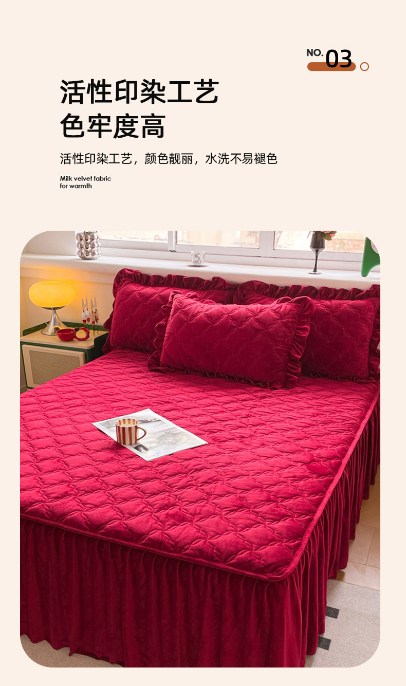 忘忧草 2024新款宝宝绒夹棉床裙-优雅 优雅-亮酒红