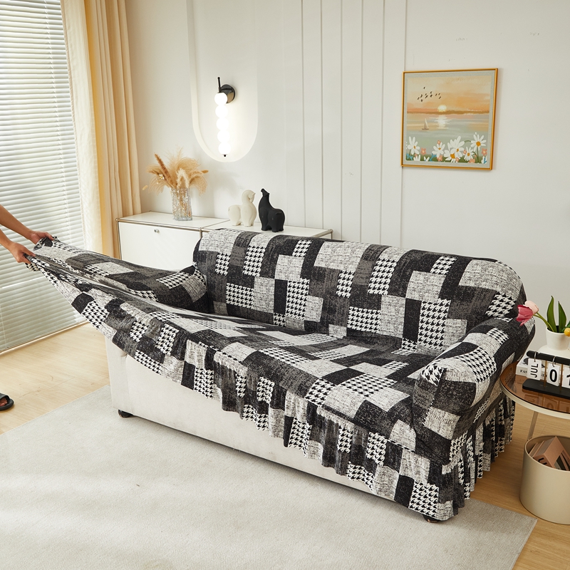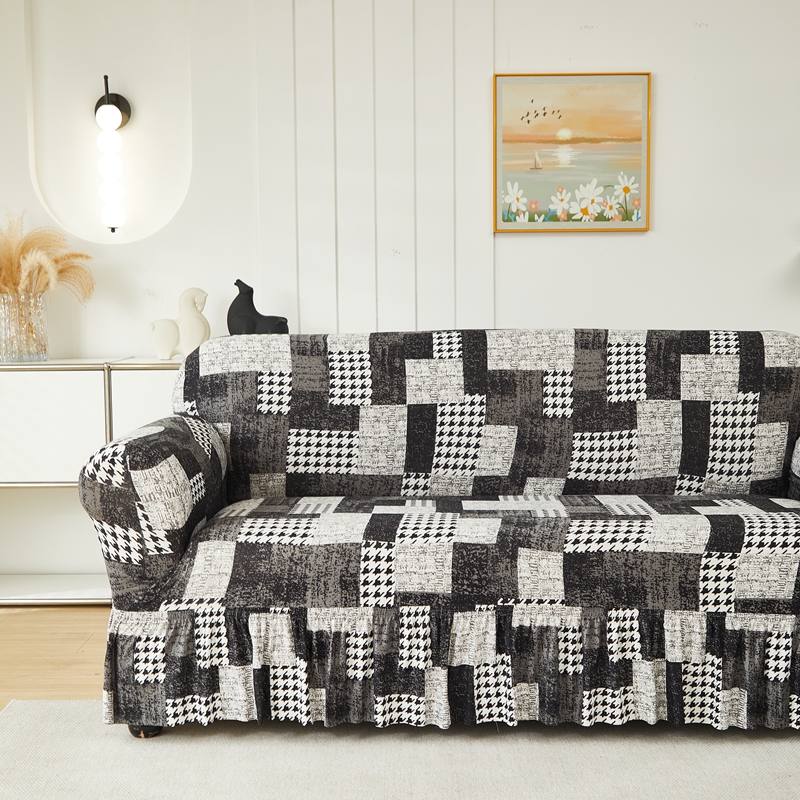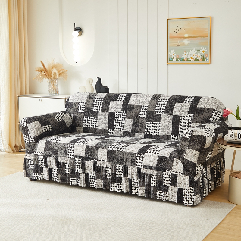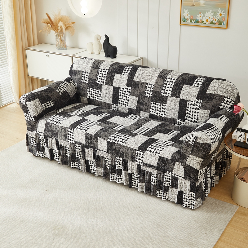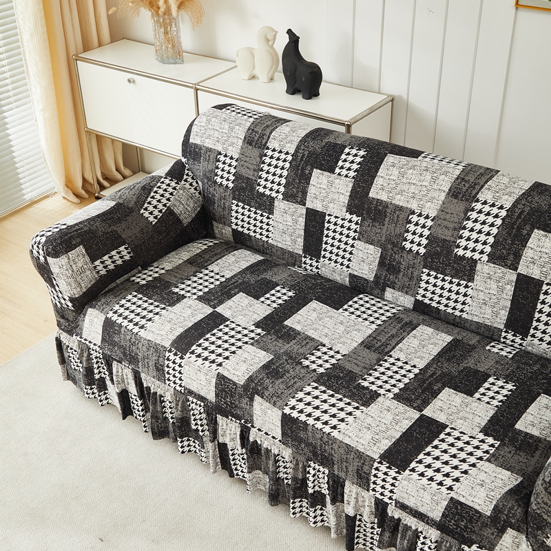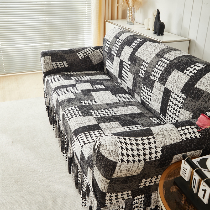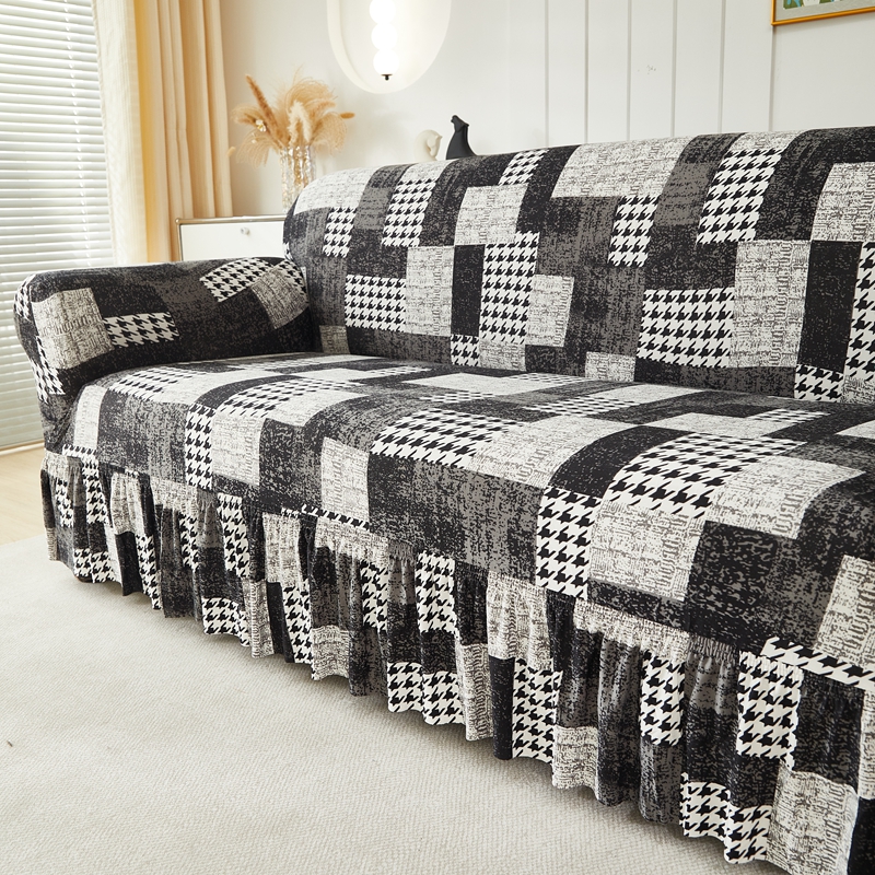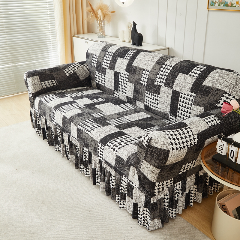 飞翔家纺 2024新款花边裙摆沙发套 裙摆-千鸟格