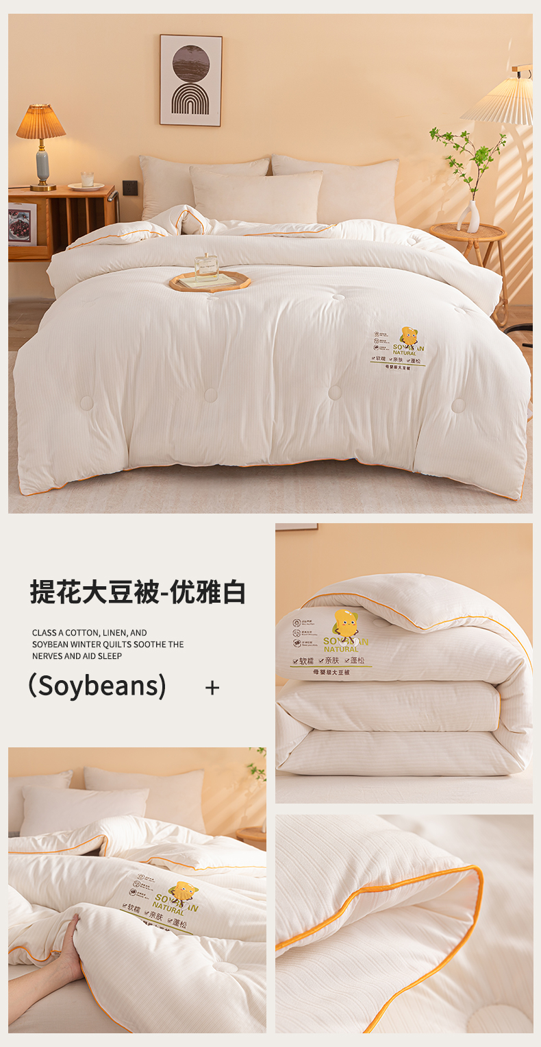 • 91家纺网 家纺一手货源 找家纺 花言狐语 2025新款水洗棉麻提花大豆被 优雅白