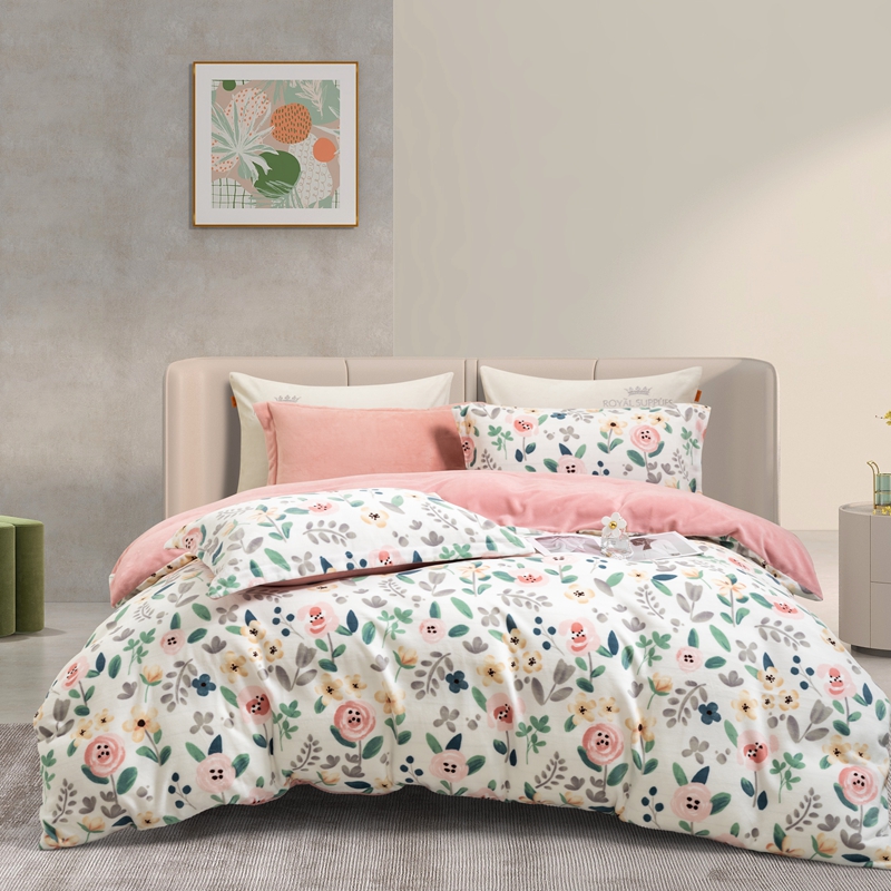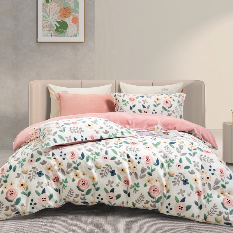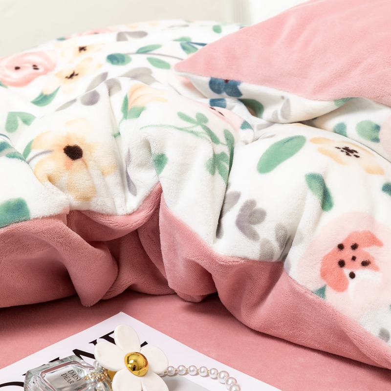 宜家坊 2024新款加厚保暖印花牛奶绒四件套 甜蜜花语