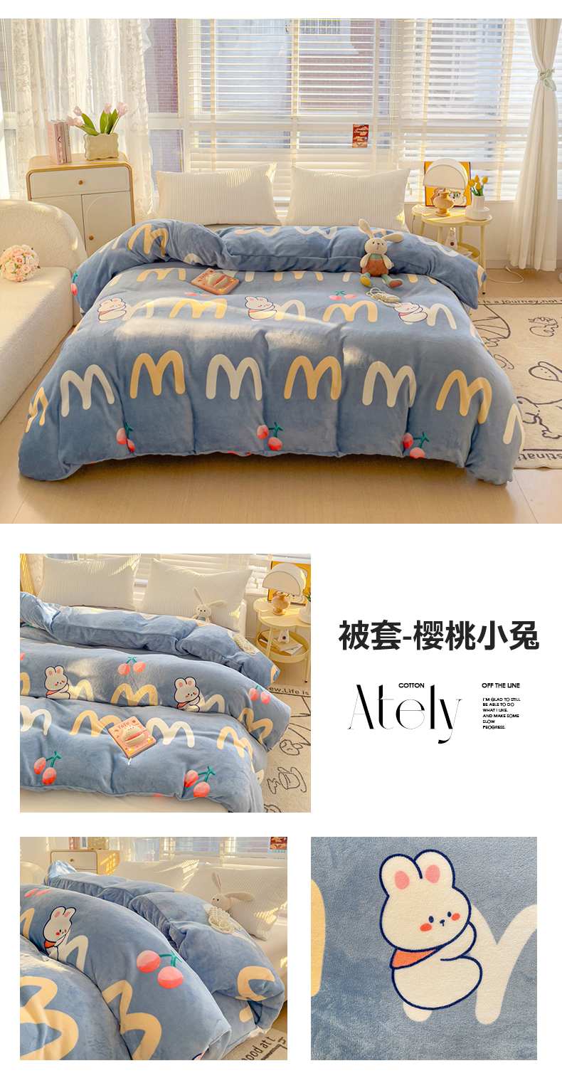 商品名称:雅萱家纺 2024新款牛奶绒单被套 被套-樱桃小兔