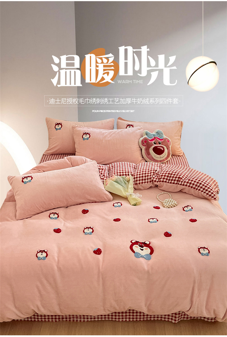 当前位置: 91家纺网 > 商品网购 > 床品套件 > 四件套 > 牛奶绒四件套 > (买家秀爆款不断货)正版迪士尼A类母婴级毛巾绣牛奶绒四件套刺绣牛奶绒毛巾绣四件套牛奶绒毛巾绣刺四件套 绒毛巾绣-草莓熊