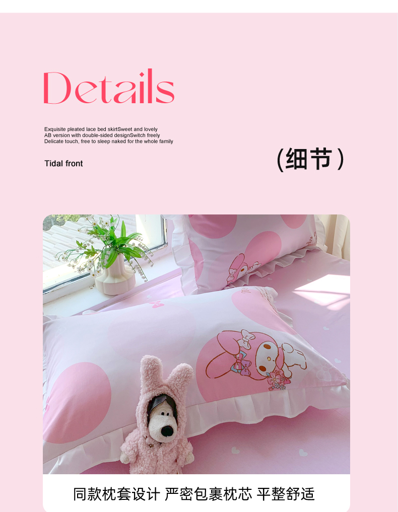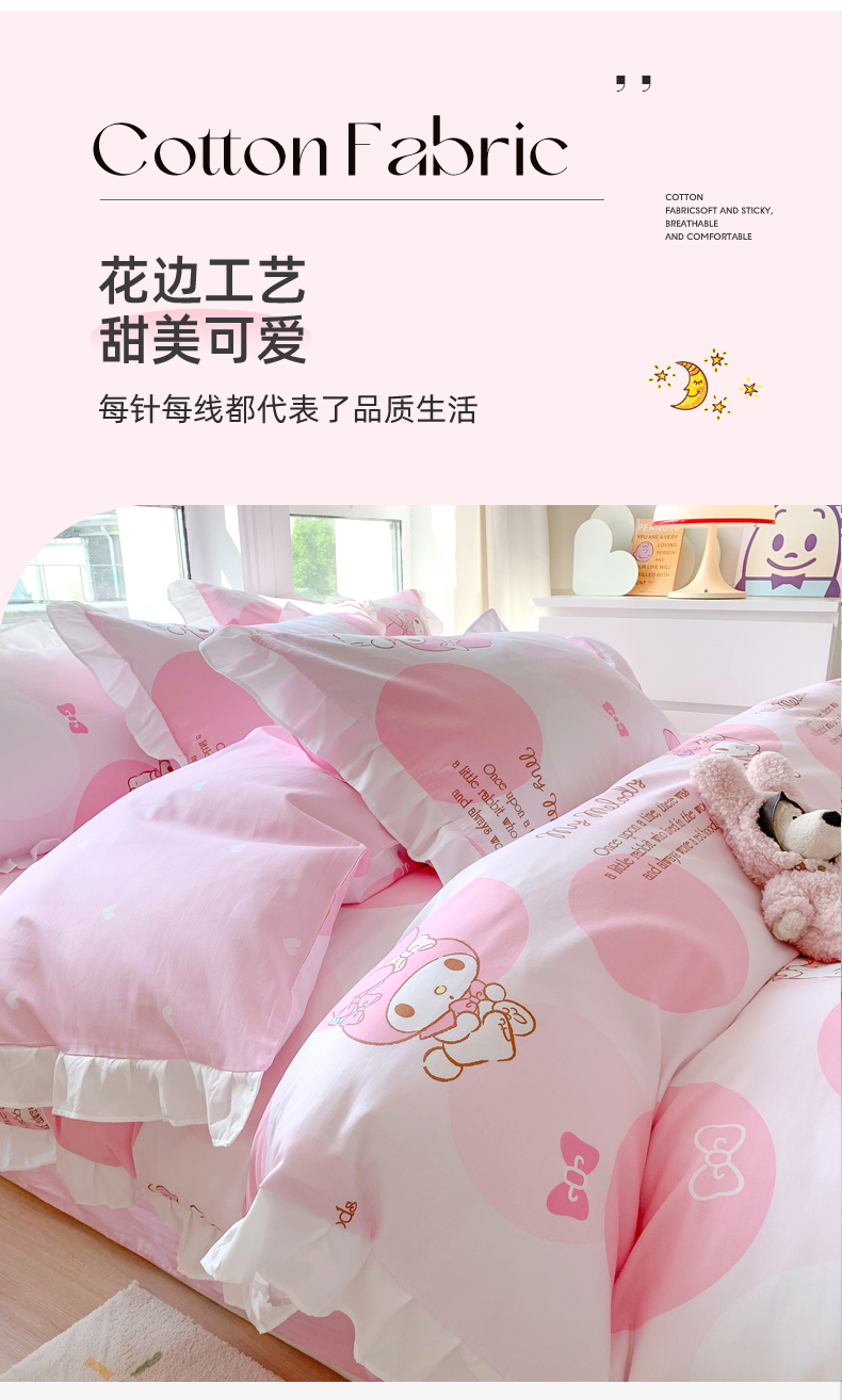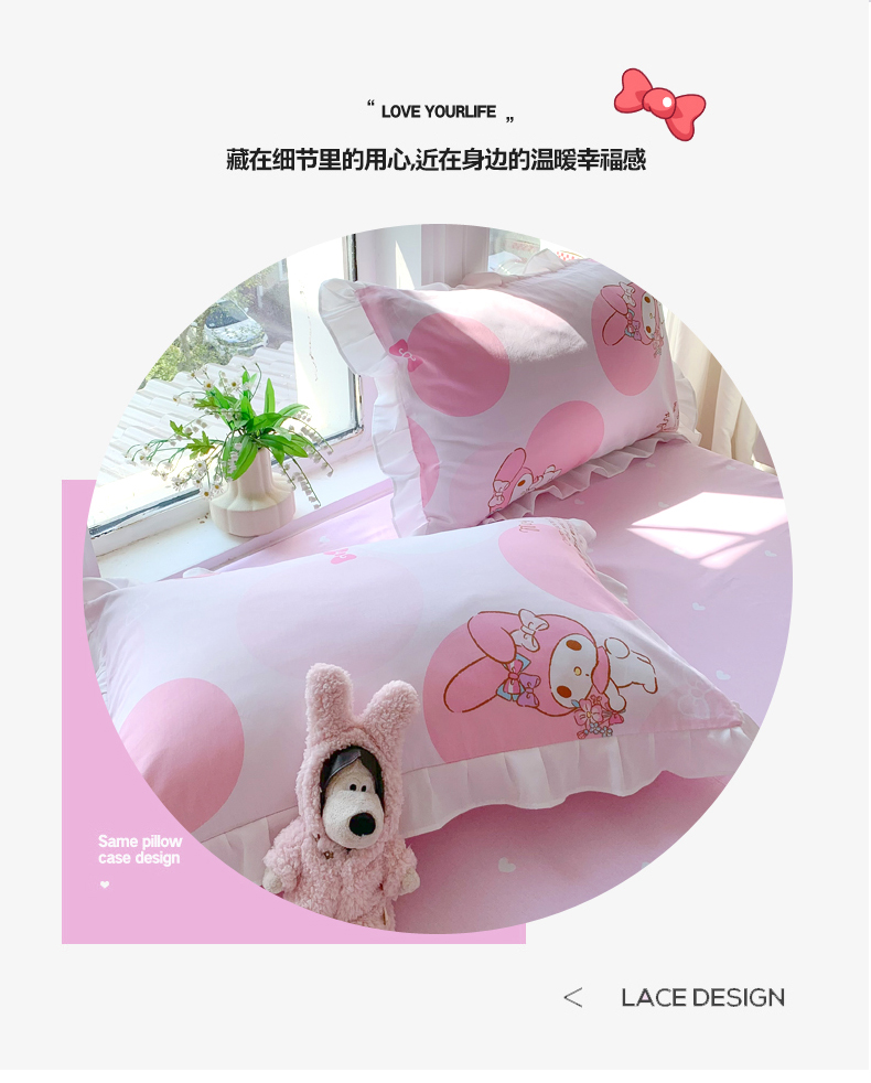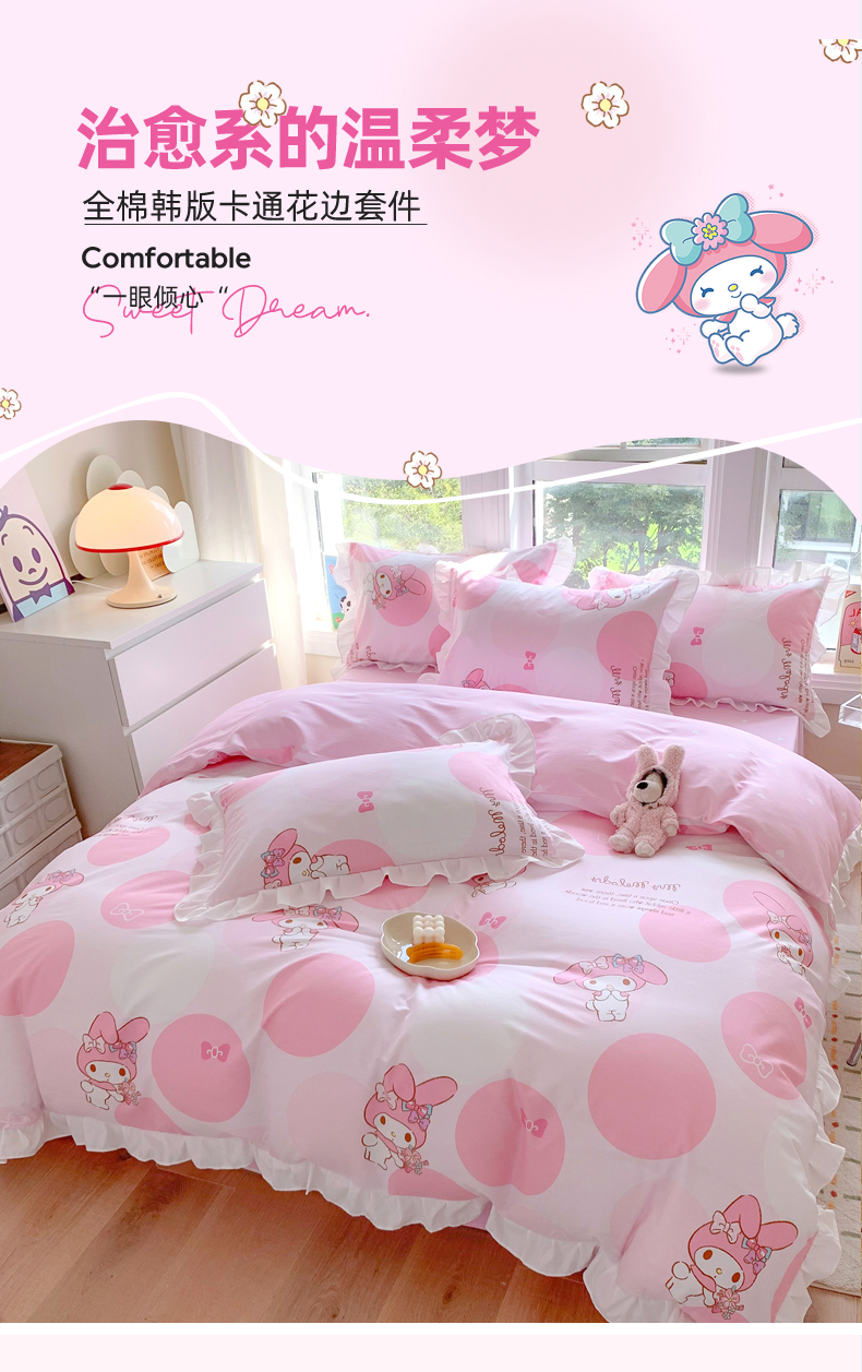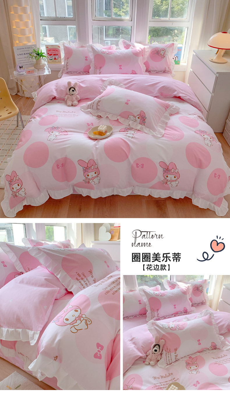 当前位置: 91家纺网 > 商品网购 > 床品套件 > 四件套 > 全棉普通四件套 > 玉元坊 2025新款三丽鸥系列白花边被套纯棉全棉床裙三件套四件套-美乐蒂白花边款式 圈圈美乐蒂【花边款】