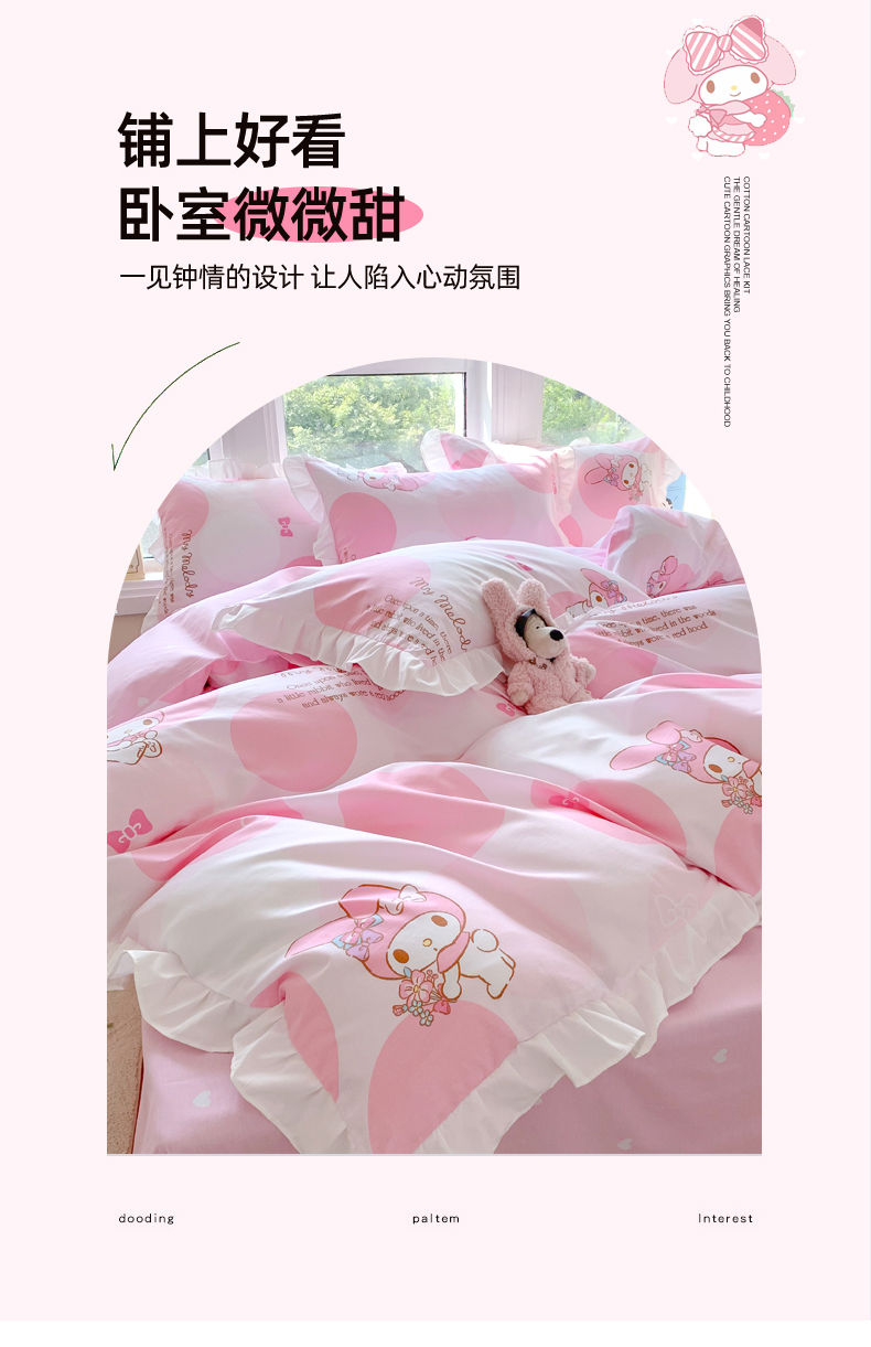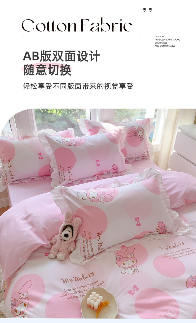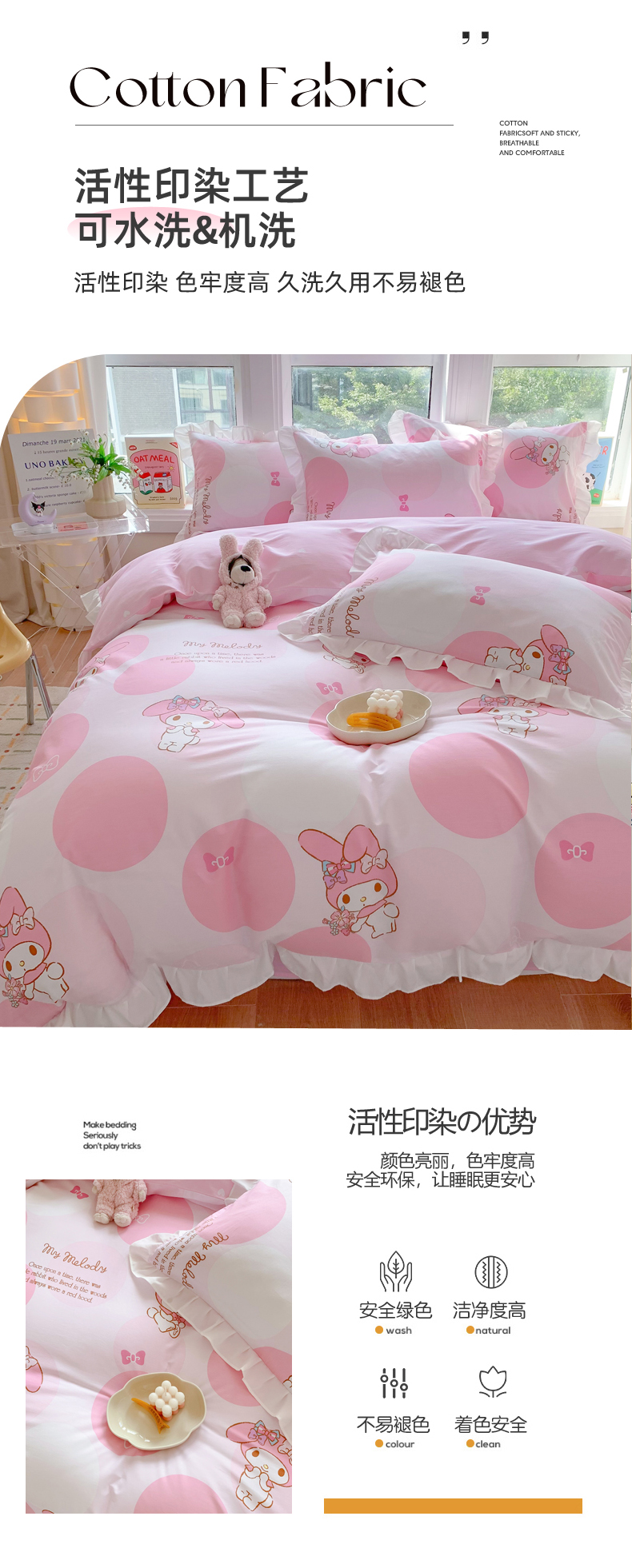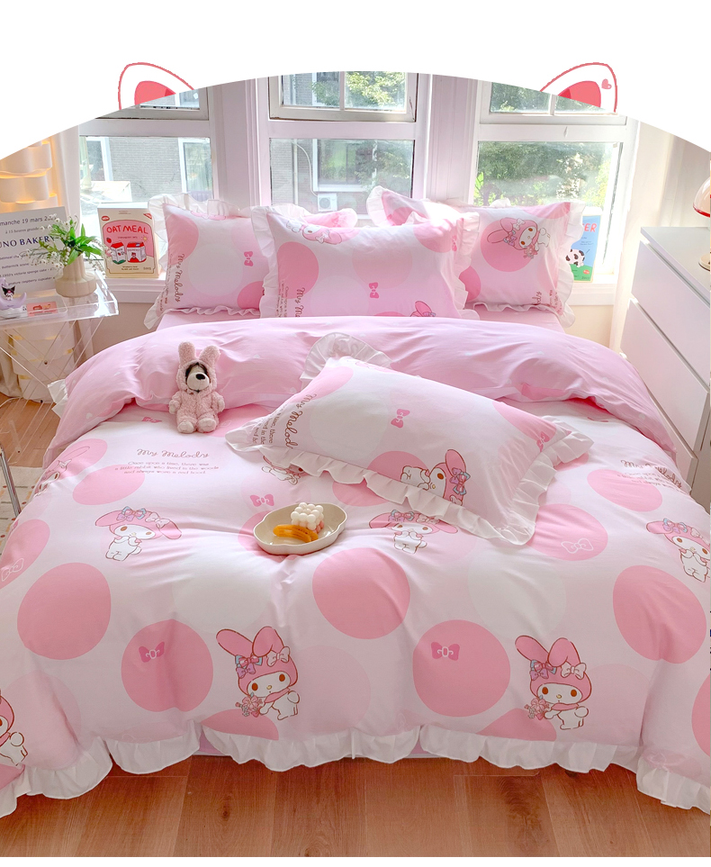 当前位置: 91家纺网 > 商品网购 > 床品套件 > 四件套 > 全棉普通四件套 > 玉元坊 2025新款三丽鸥系列白花边被套纯棉全棉床裙三件套四件套-美乐蒂白花边款式 圈圈美乐蒂【花边款】