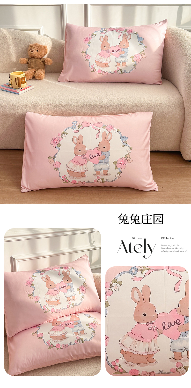 多品家纺 2025新款大版系列超柔水洗棉枕套 大版兔兔庄园