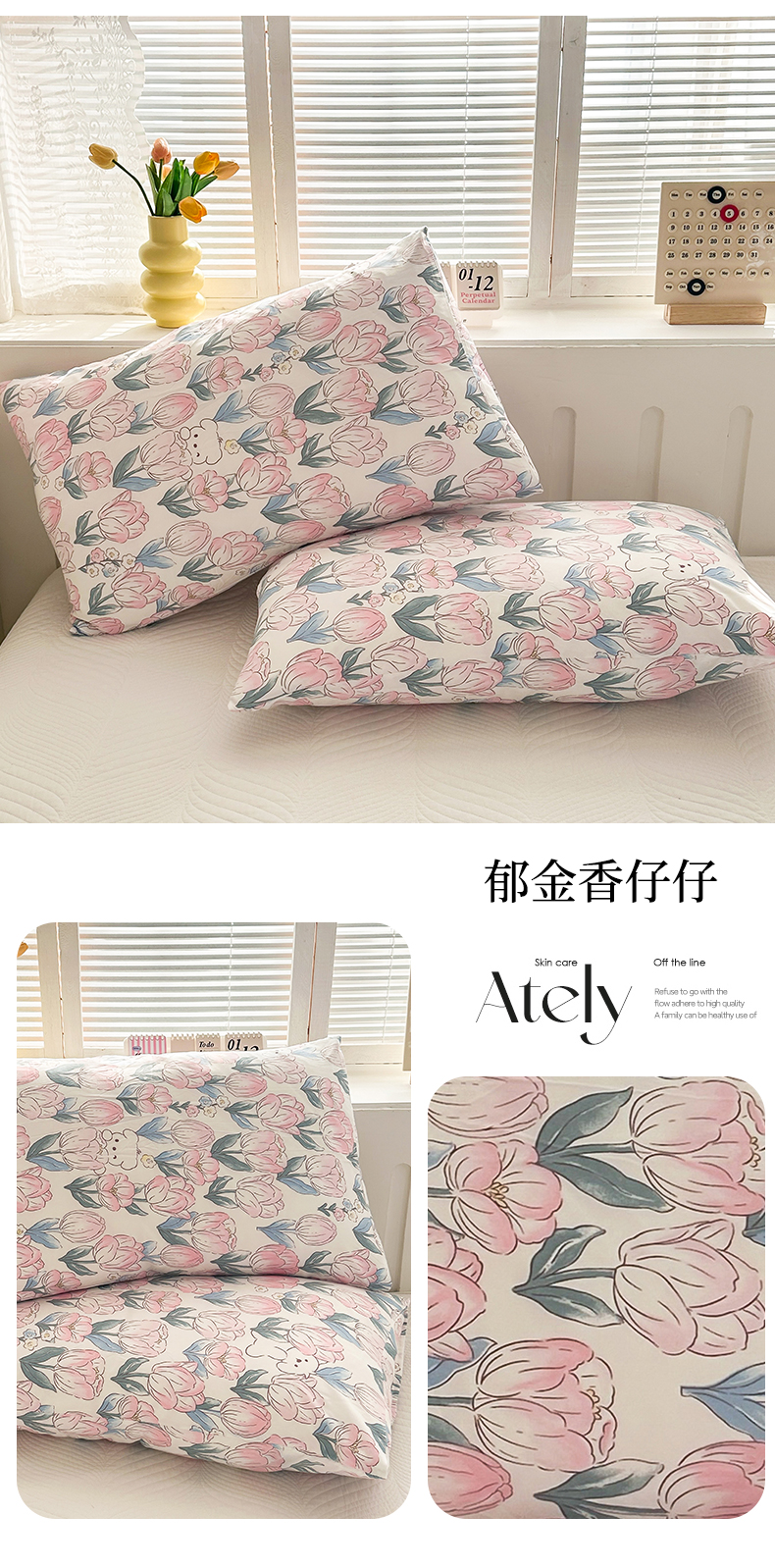 商品名称:多品家纺 2025新款花卉系列超柔水洗棉枕套 郁金香仔仔