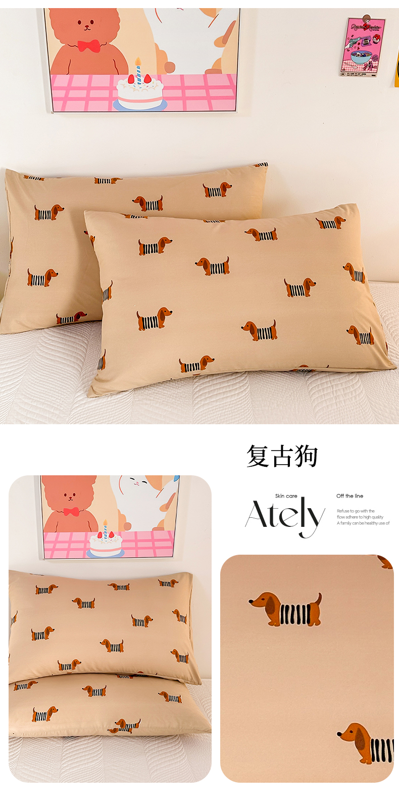 多品家纺 2025新款卡通系列柔水洗棉枕套 复古狗