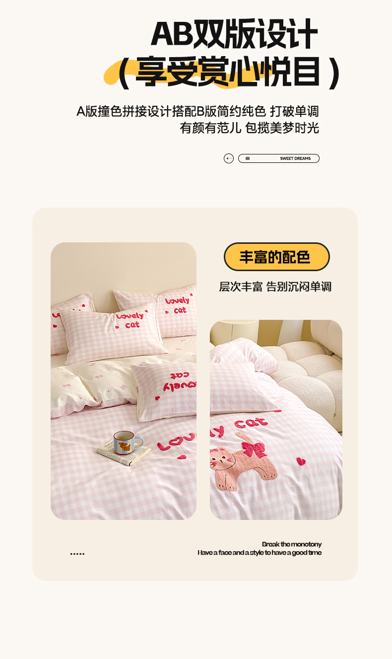 (总)沐辰 2025沐辰家居-新款13070印加绣纯棉套件,蛋糕猫咪,快乐小狗,面包小熊,星星小熊,樱桃猫咪