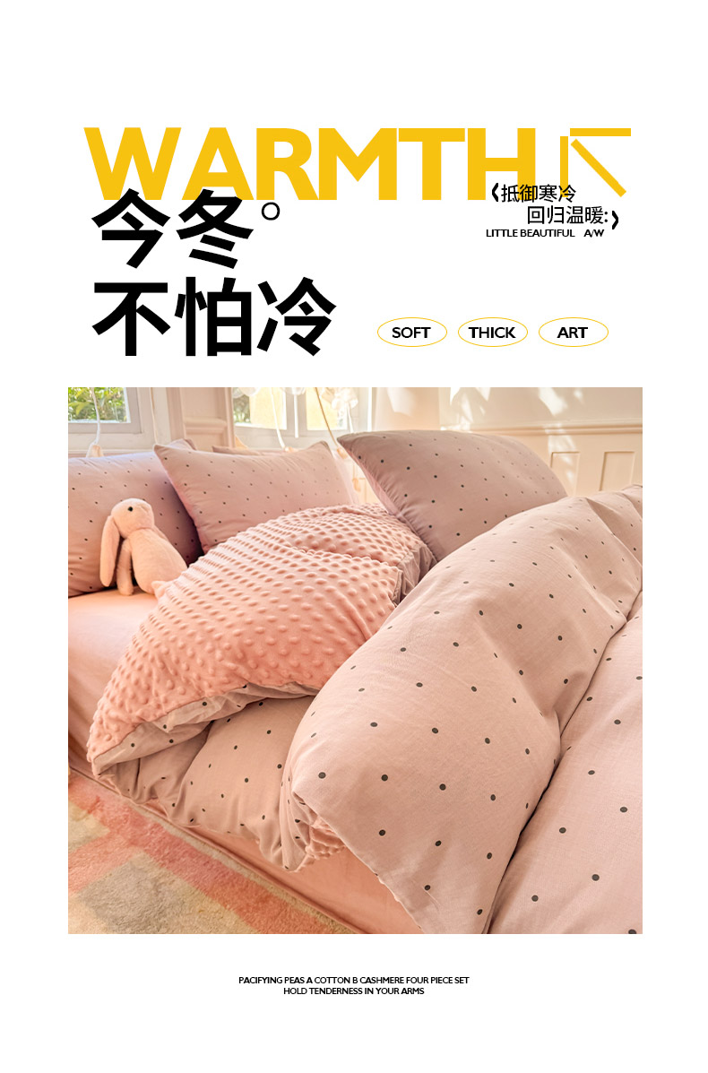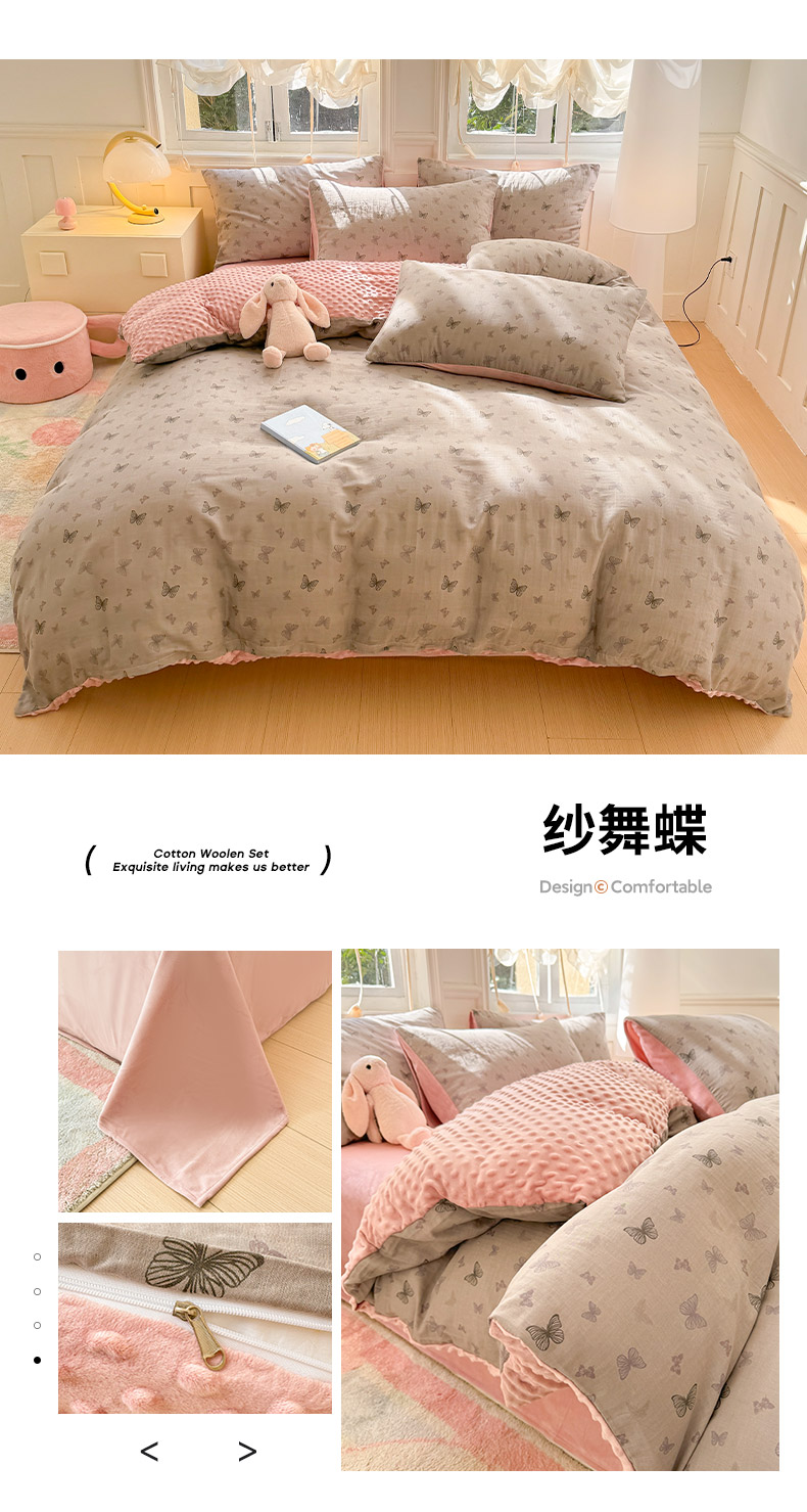 (总)千朵 2025新款豆豆绒双层纱四件套