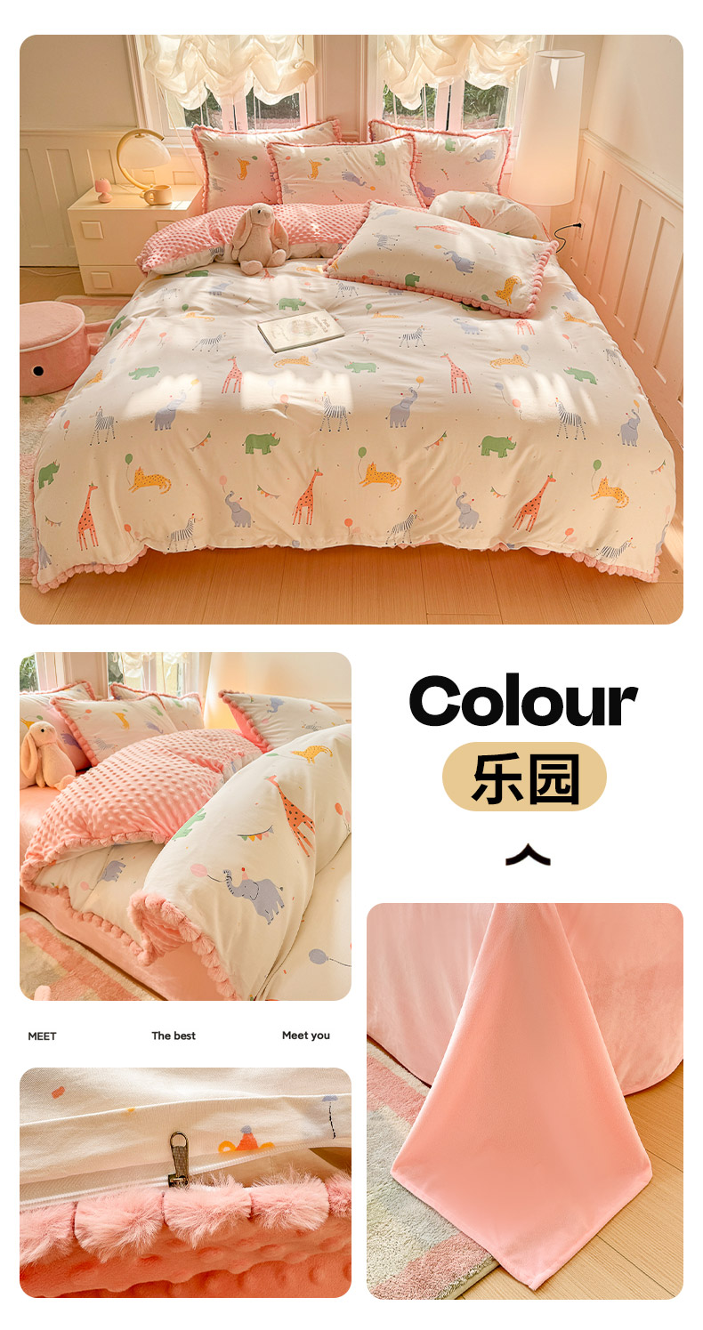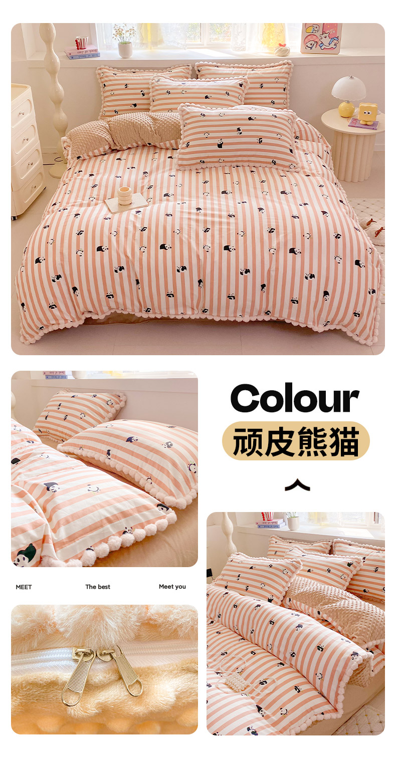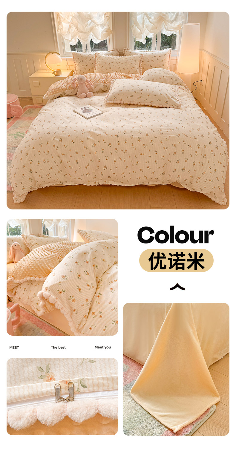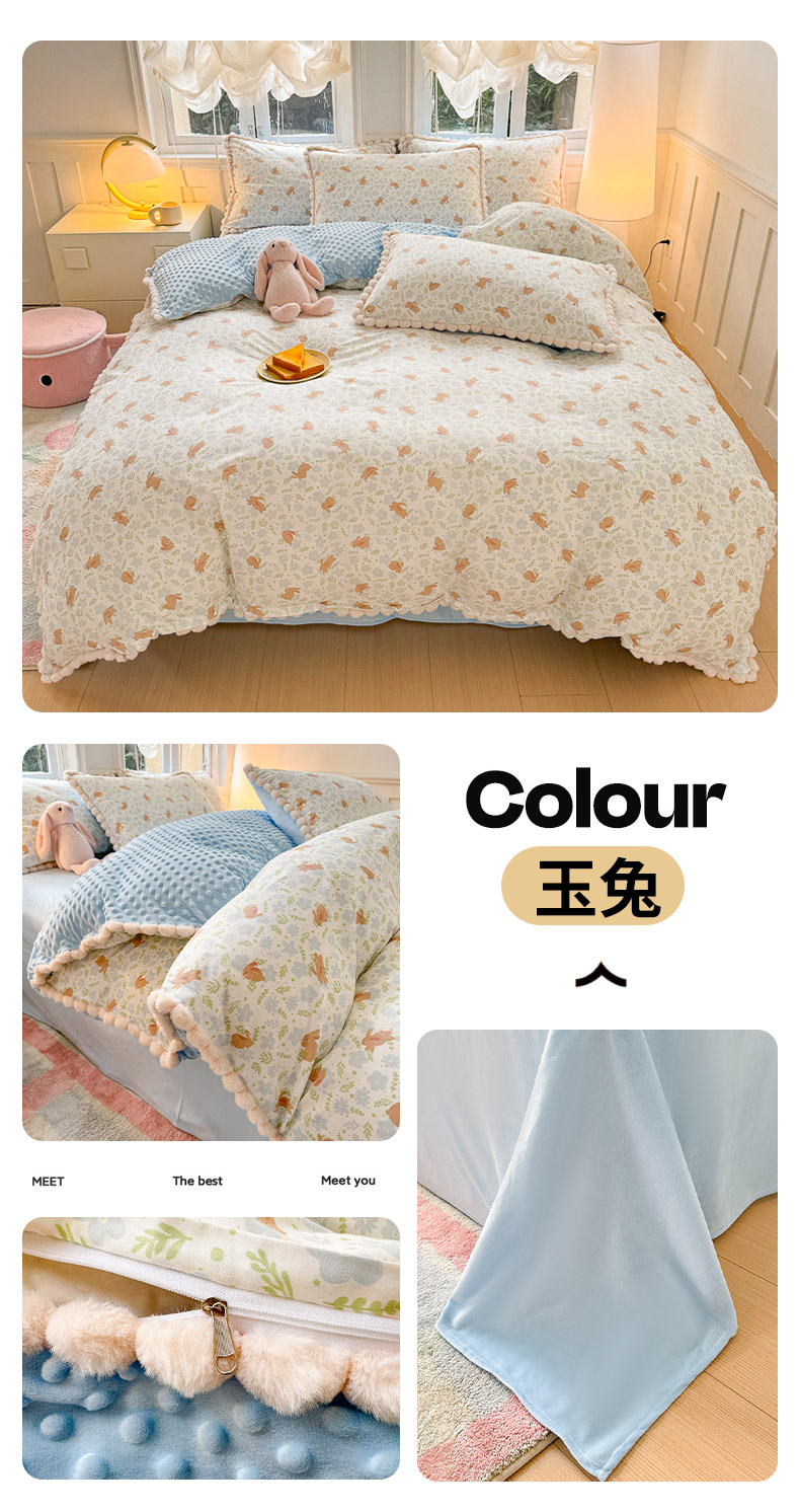 (总)千朵 2025新款棉加豆豆绒毛毛球边四件套