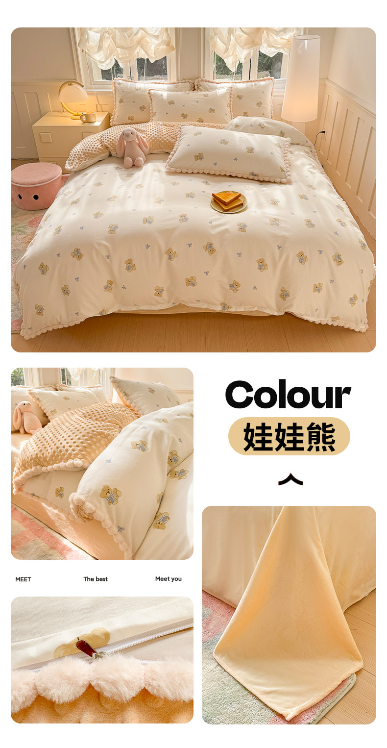 (总)千朵2022新款牛奶绒系列四件套,艾维-红,花梦,快乐鸭,蓝莓兔,恋语,流苏,倾心,星星熊,熊仔,艾维-黑,茶艺,晨暮,黑白涂鸦,黑森林,花间密语,卡洛,星之所向,郁金香-橙