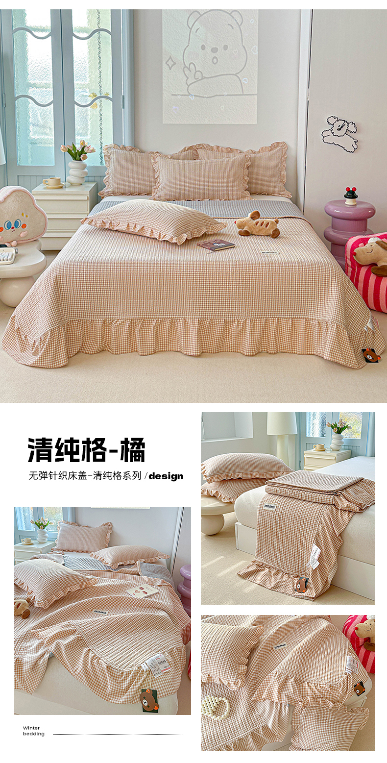 商品名称:源舜家纺 2025新款无弹针织棉床盖三件套-清纯格 清纯格-橘