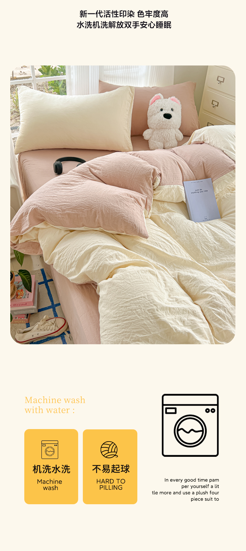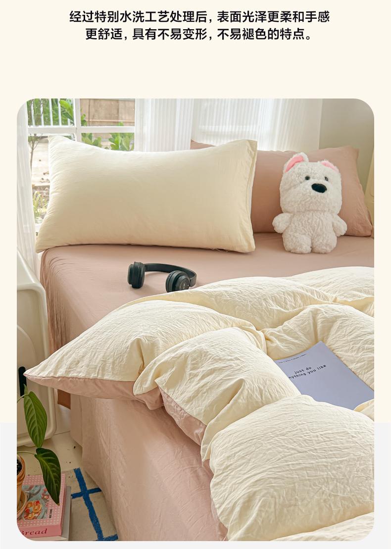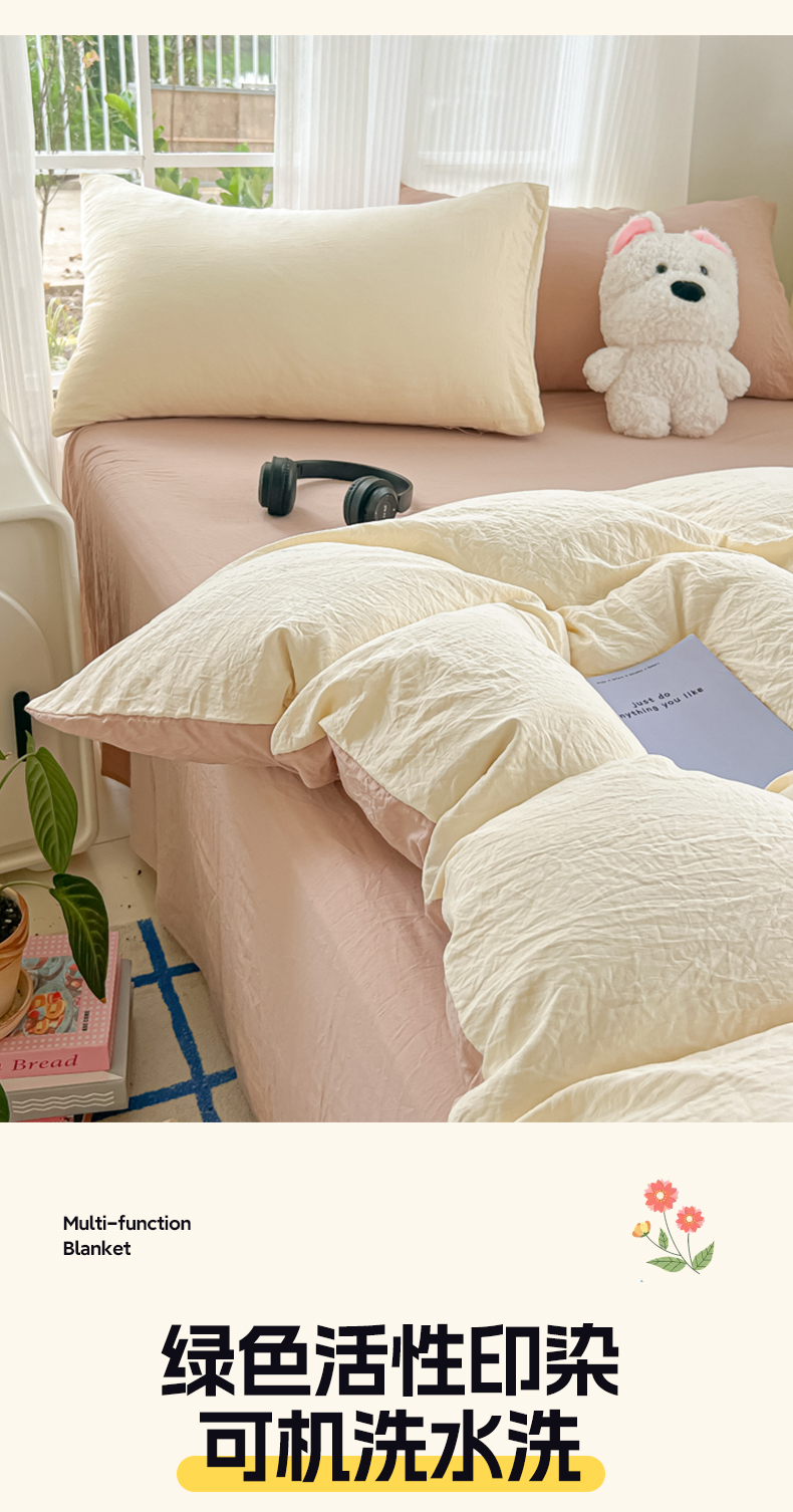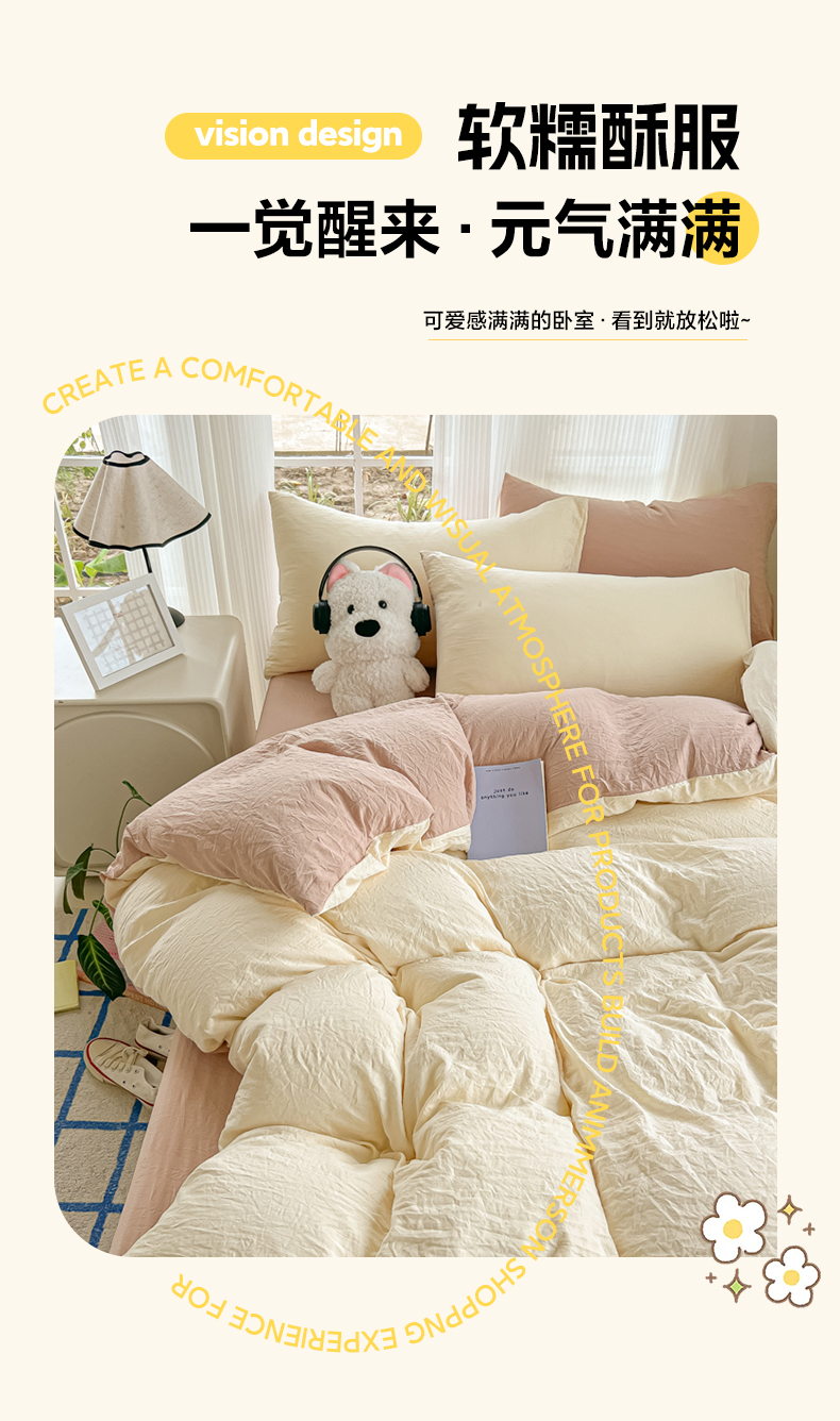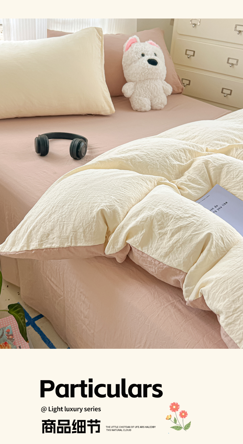 当前位置: 91家纺网 > 商品网购 > 床品套件 > 四件套 > 水洗棉四件套 > 韩巢家纺 2025新款ins风超柔水洗棉四件套-纯色双拼系列(提供卖家秀) 水洗棉奶黄咖