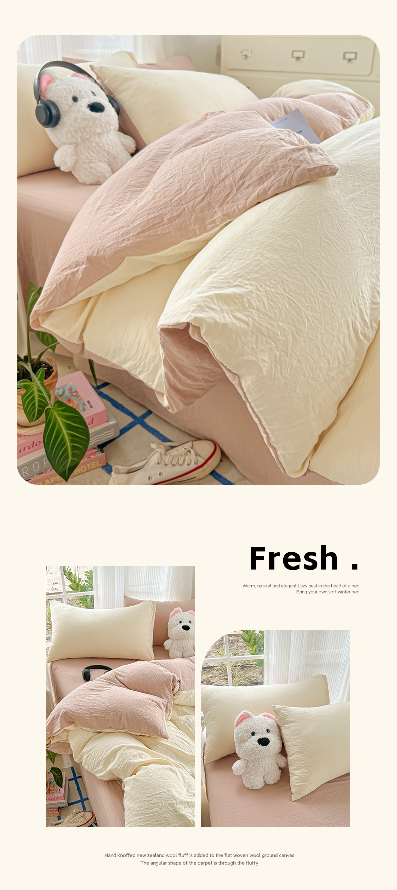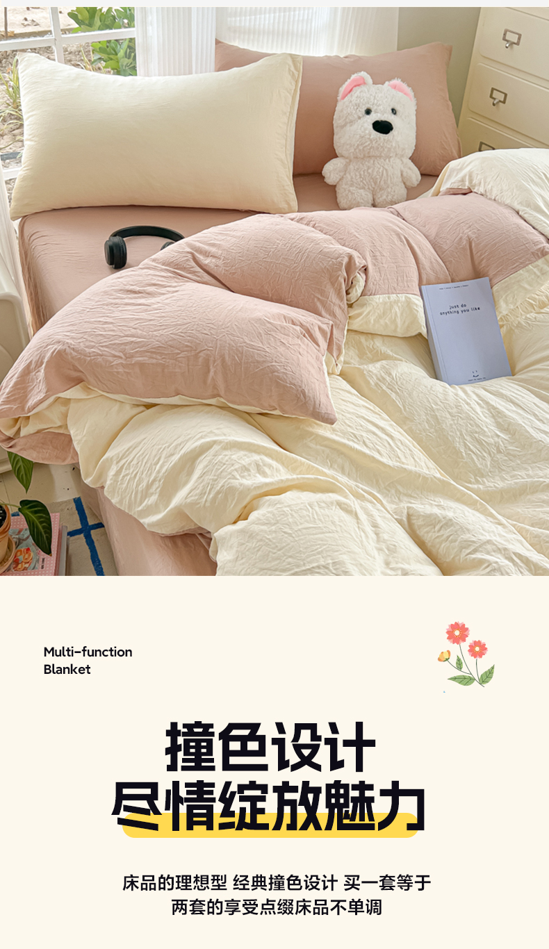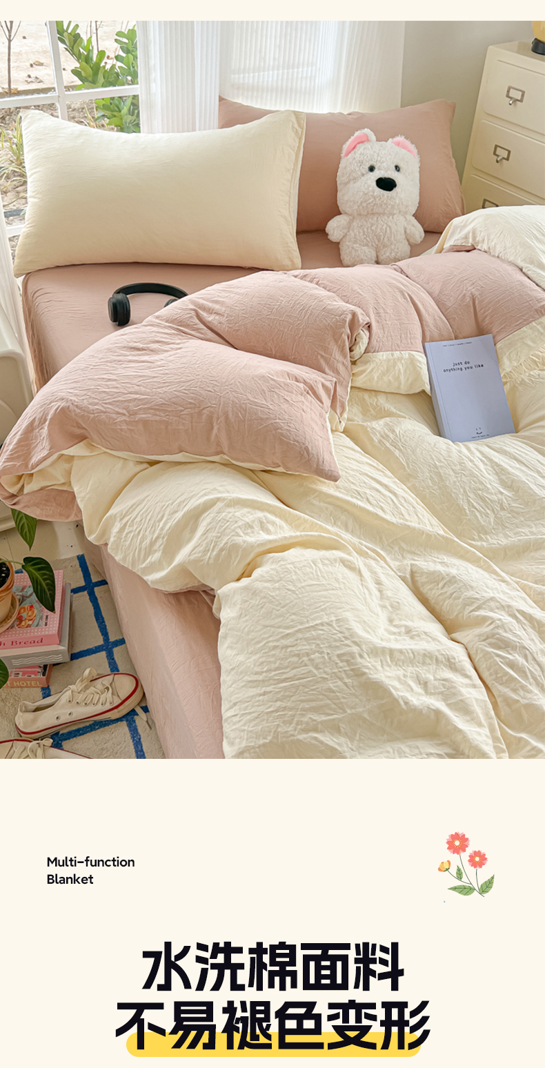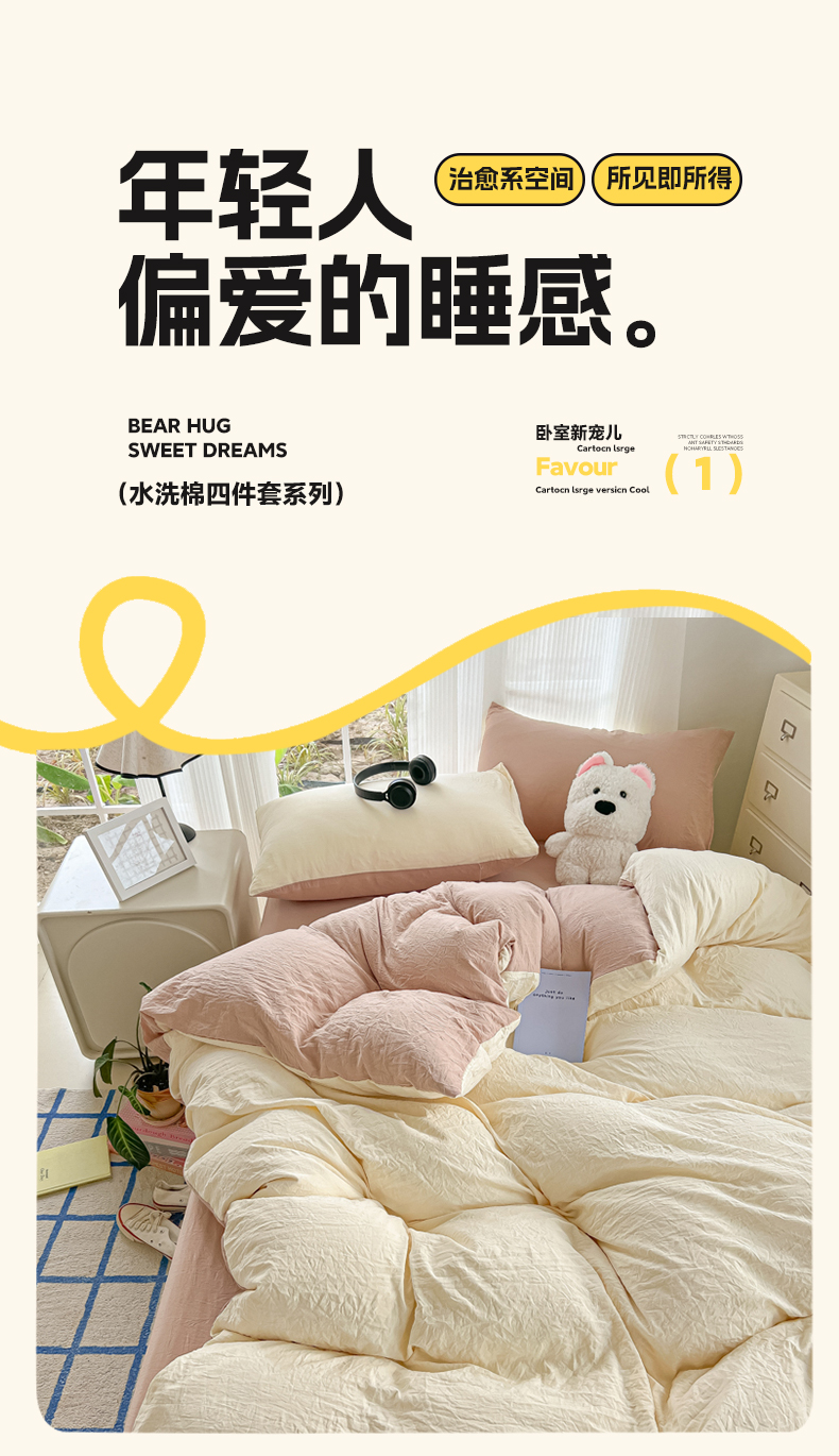 当前位置: 91家纺网 > 商品网购 > 床品套件 > 四件套 > 水洗棉四件套 > 韩巢家纺 2025新款ins风超柔水洗棉四件套-纯色双拼系列(提供卖家秀) 水洗棉奶黄咖
