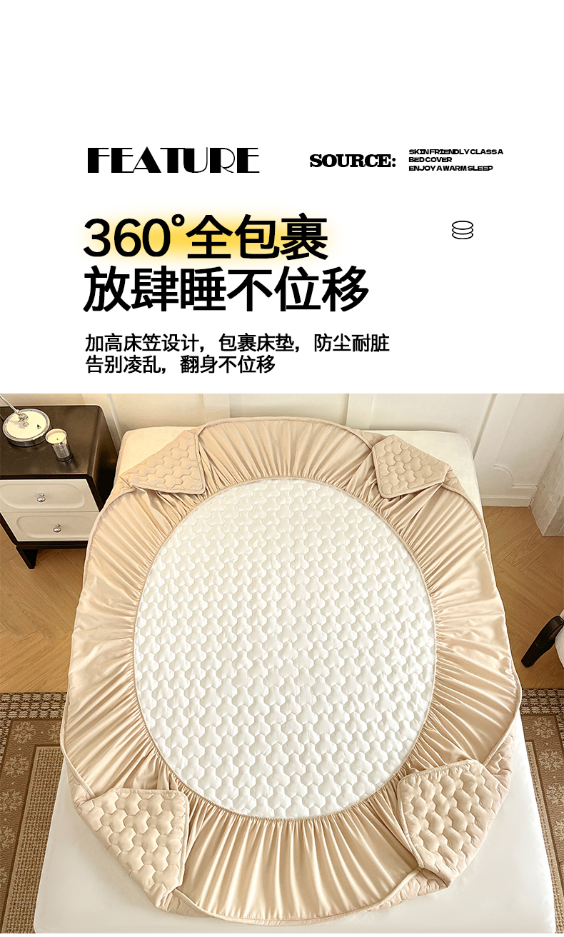 商品名称:迪梦思家纺 2025新款A类亲肤原棉夹棉床笠-蜂窝 蜂窝-卡其