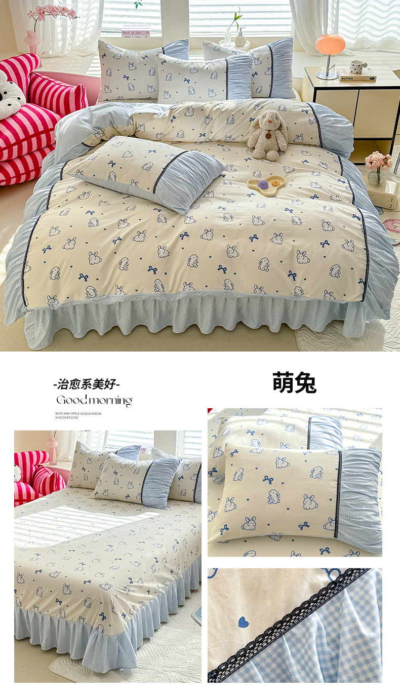 商品名称:芭比蔓家纺 2025新款磨毛法式浪漫复古四件套 萌兔