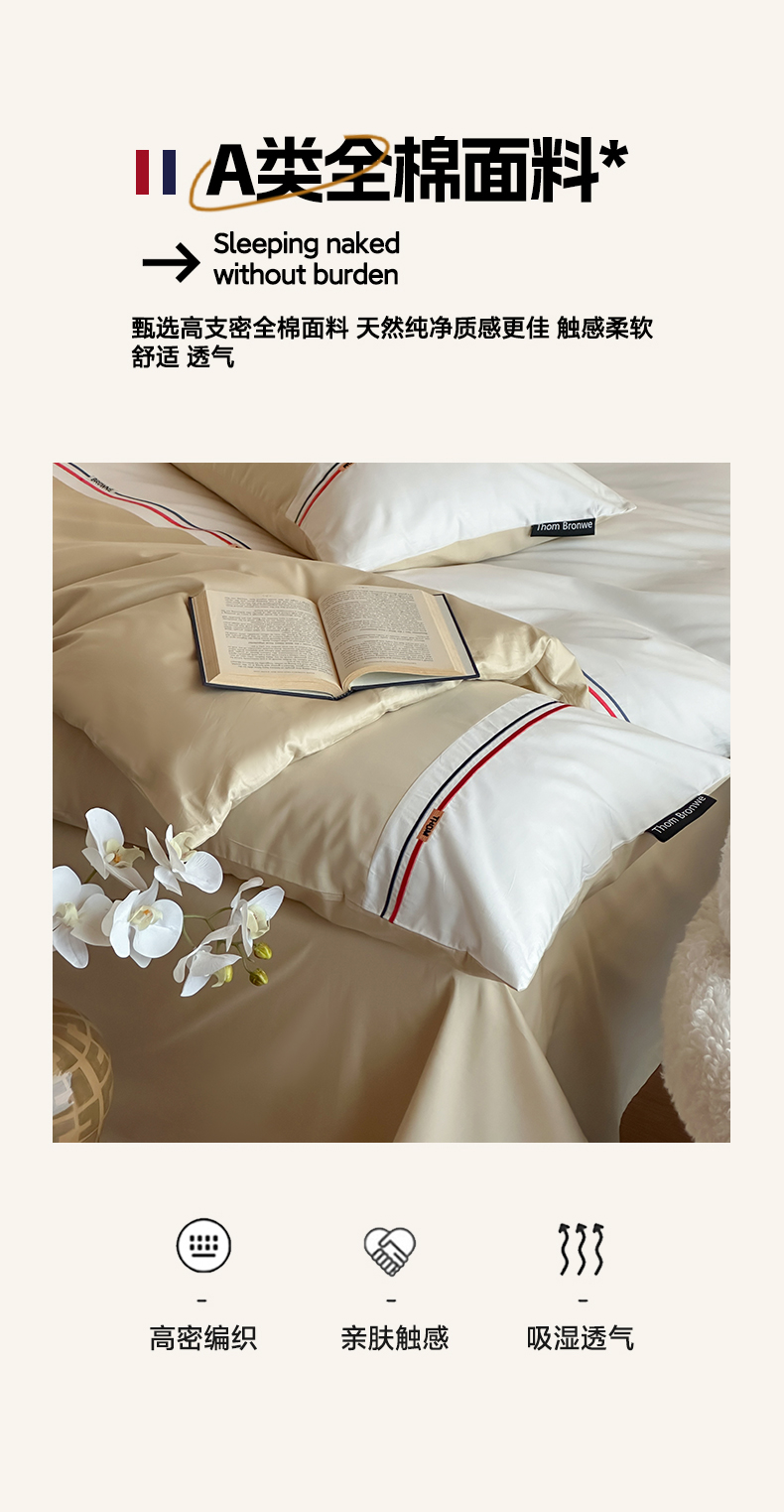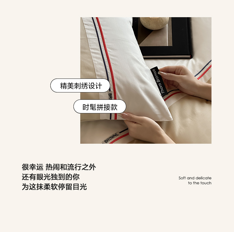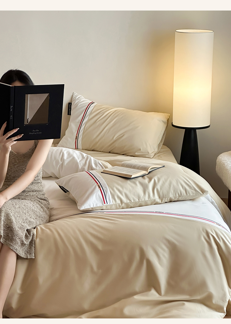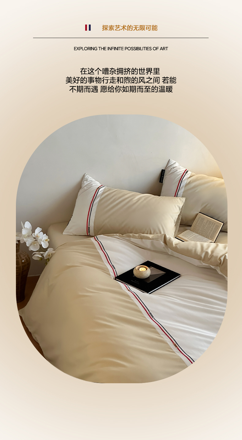 商品名称:卡巴伦家纺 2025新款全棉A类绣花拼接款四件套-布朗 布朗-卡其色