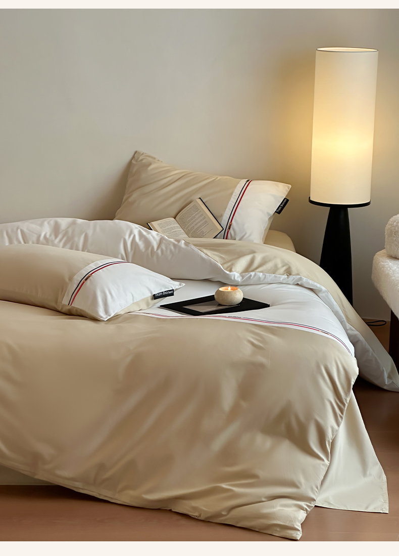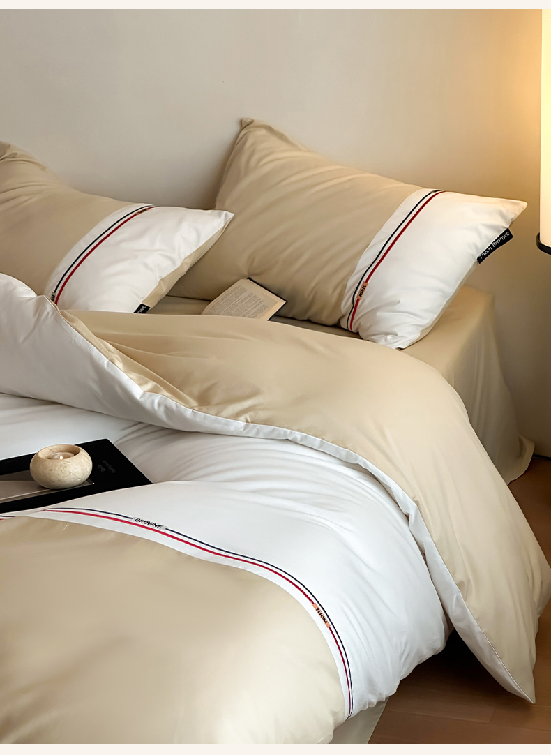 卡巴伦家纺 2025新款全棉A类绣花拼接款四件套-布朗 布朗-卡其色