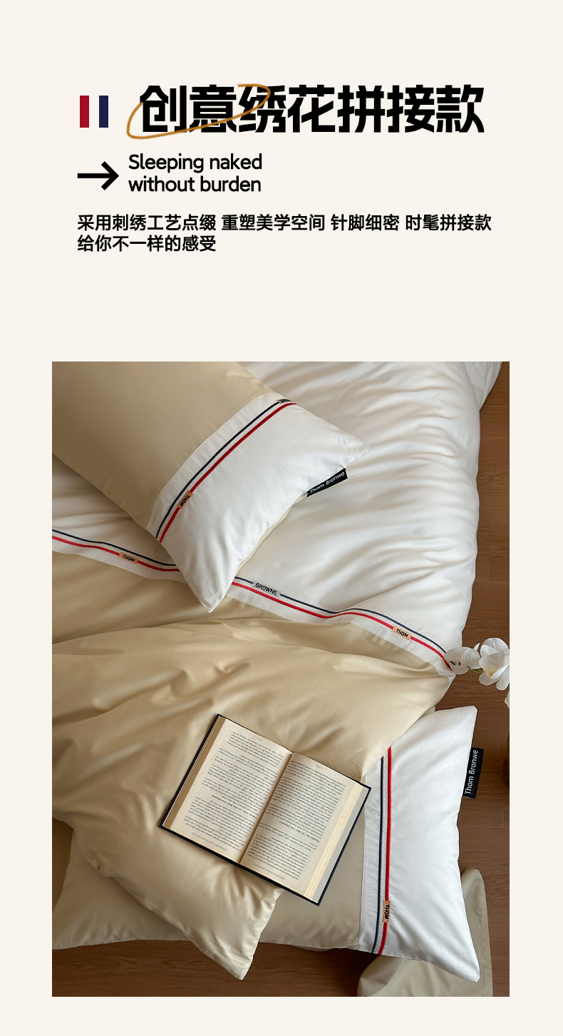 (总)卡巴伦家纺 2025新款全棉超细旦磨毛刺绣拼接四件套-旷野(会员:-20元 控价:358元),旷野-白,旷野-灰,旷野-咖,旷野-紫