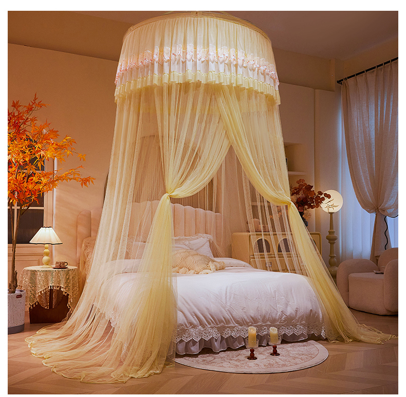 雪姿家纺 2025新款圆顶公主风落地蚊帐-倾城 倾城-黄色