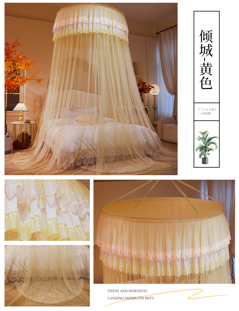 商品名称:雪姿家纺 2025新款圆顶公主风落地蚊帐-倾城 倾城-黄色