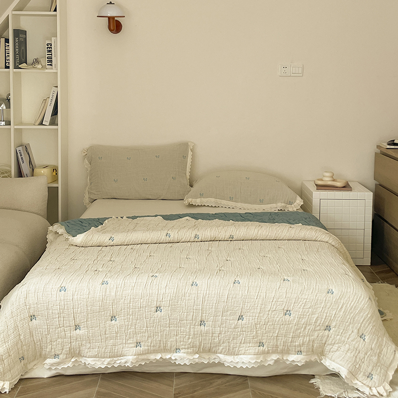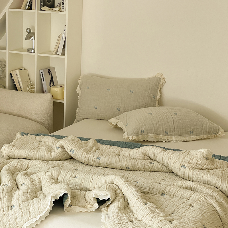 (总)麻依 2025新款韩国清新全棉纱布床盖三件套,憨憨熊,彩色南瓜,车厘子,两颗草莓,奶盖KT,奶油波点-灰,奶油彩点,水蓝KT,水墨花,丝带,桃心-米白,小猫鱼