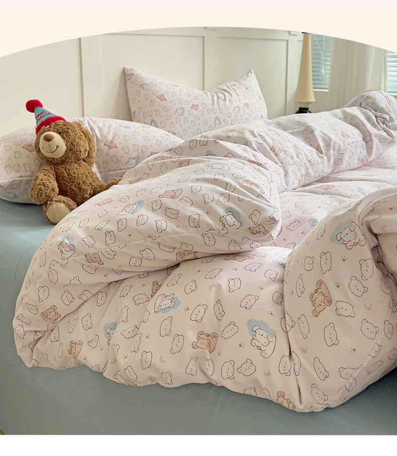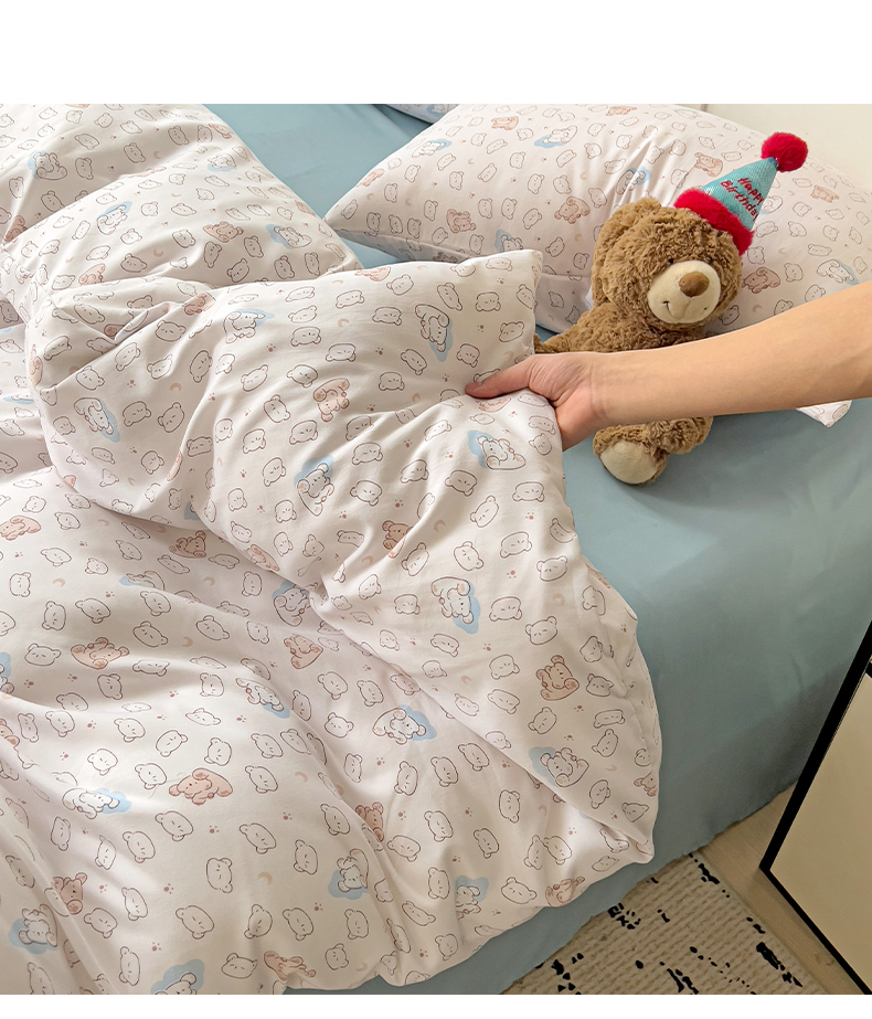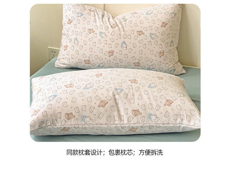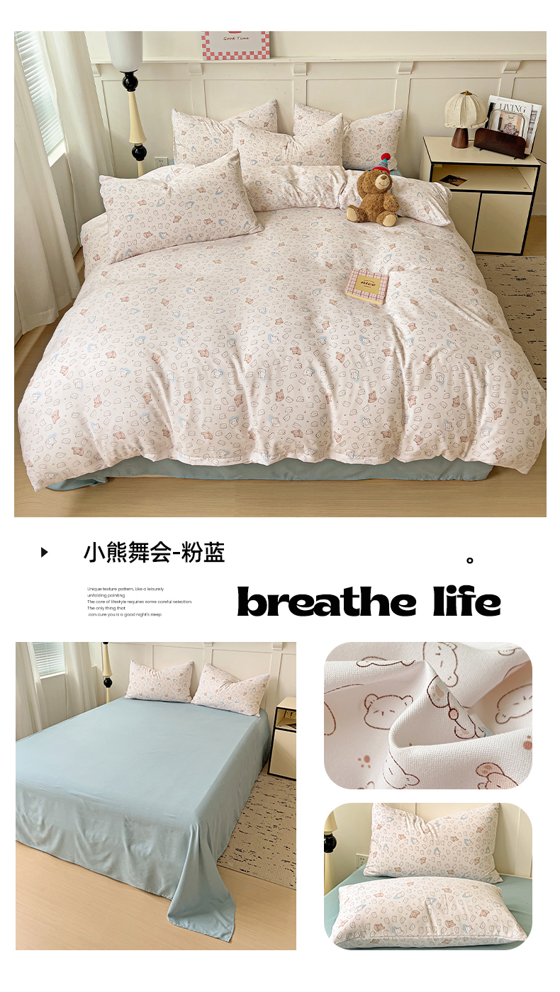 当前位置: 91家纺网 > 商品网购 > 床品套件 > 四件套 > 针织棉四件套 > 妖妖家纺 2025新款有氧针织棉双层纱四件套 小熊舞会-粉蓝