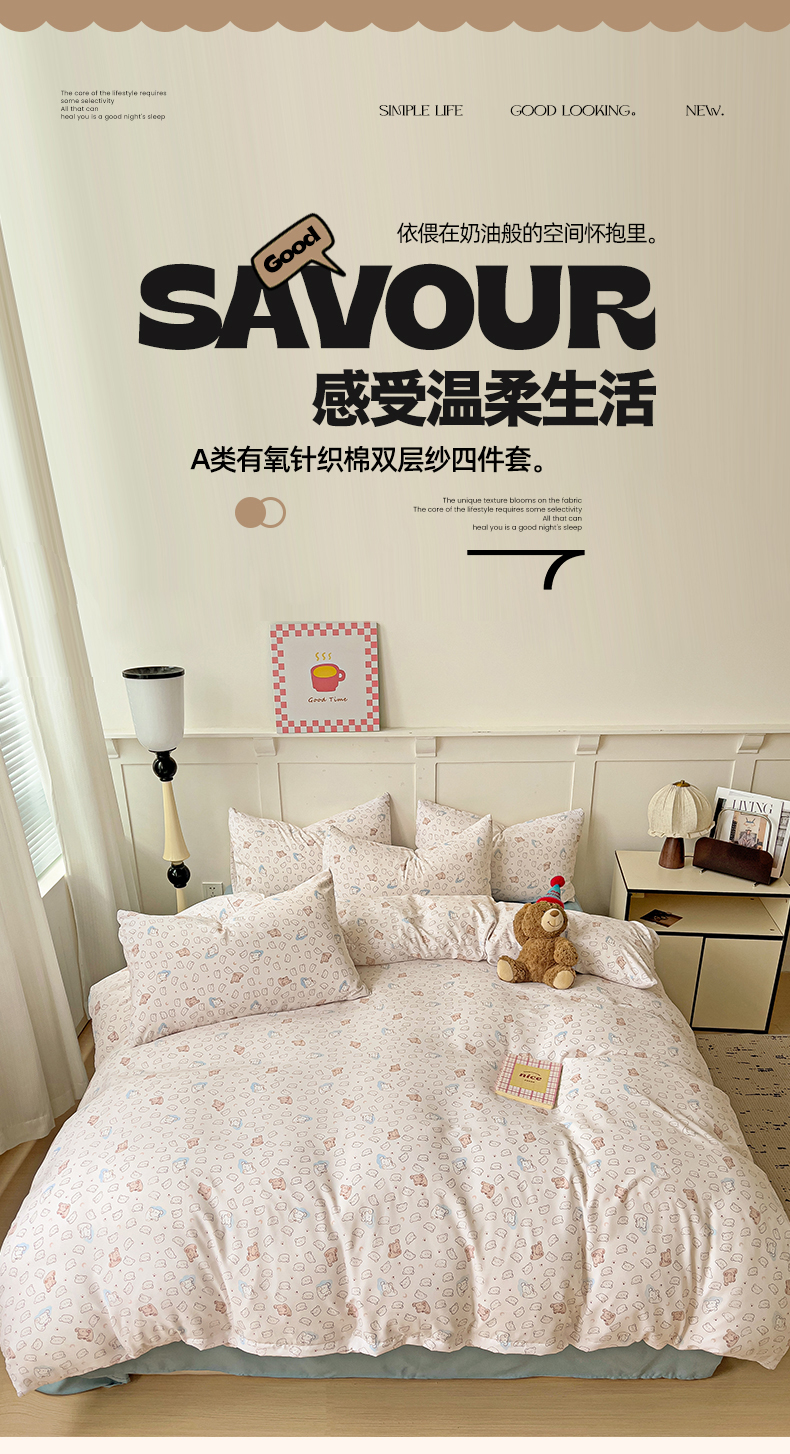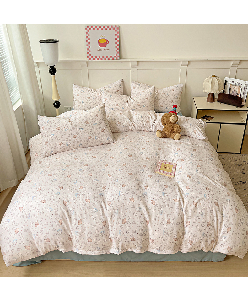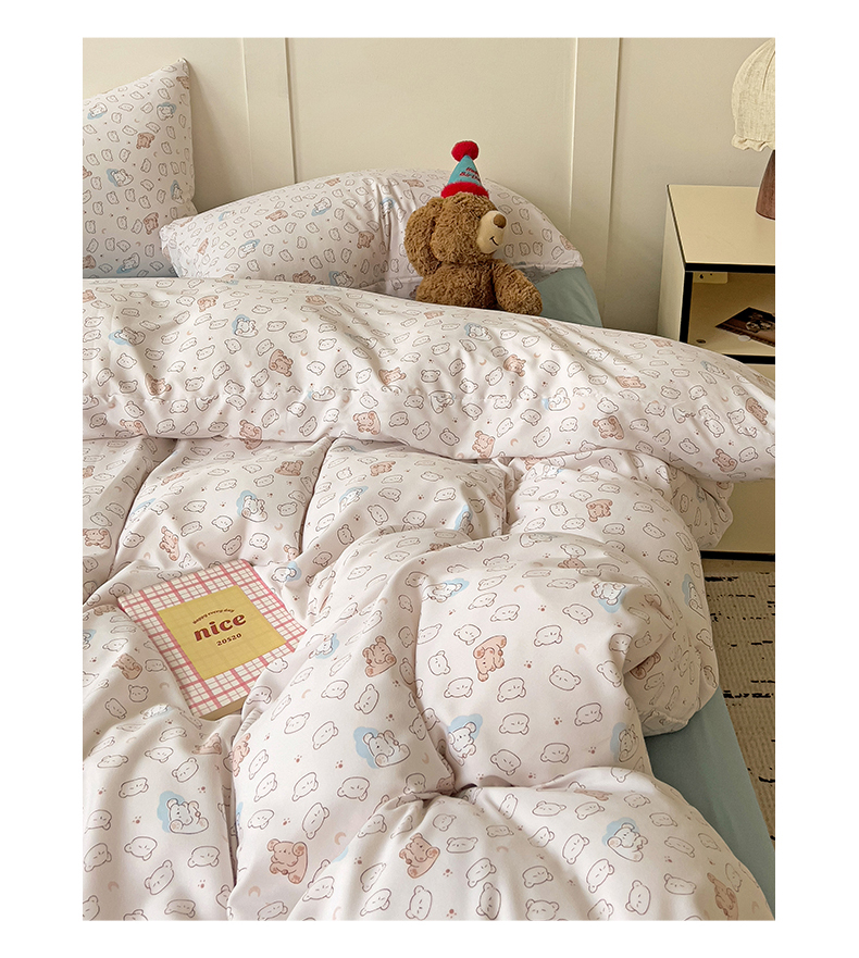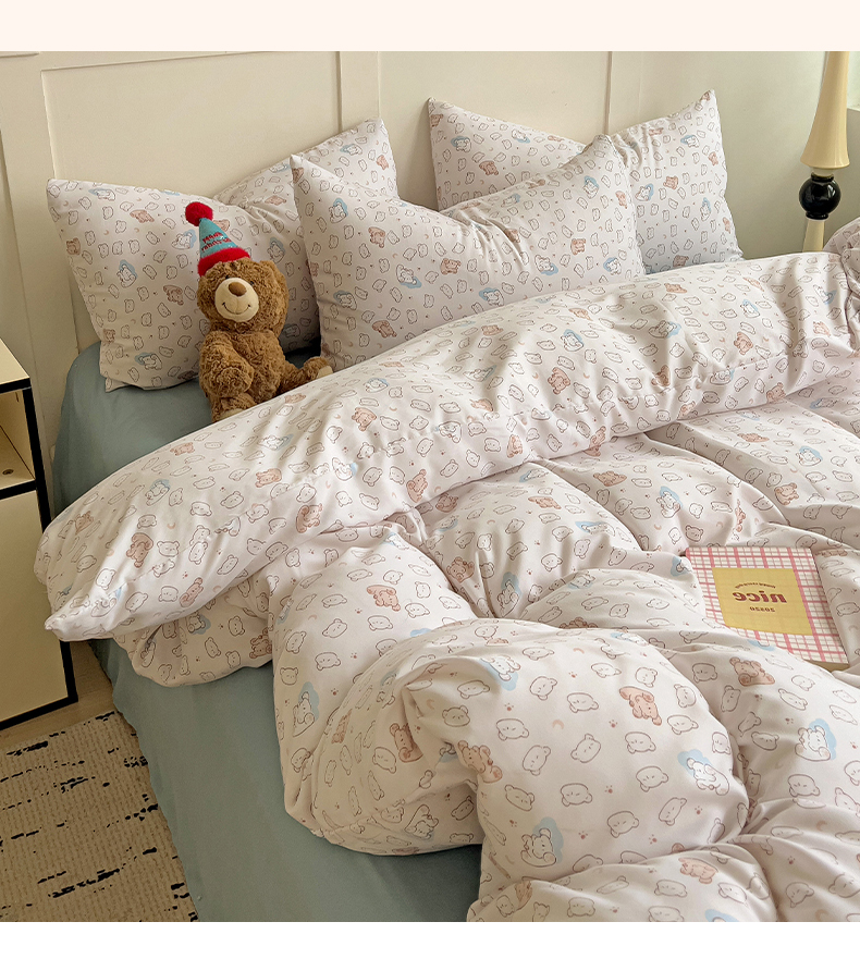 当前位置: 91家纺网 > 商品网购 > 床品套件 > 四件套 > 针织棉四件套 > 妖妖家纺 2025新款有氧针织棉双层纱四件套 小熊舞会-粉蓝