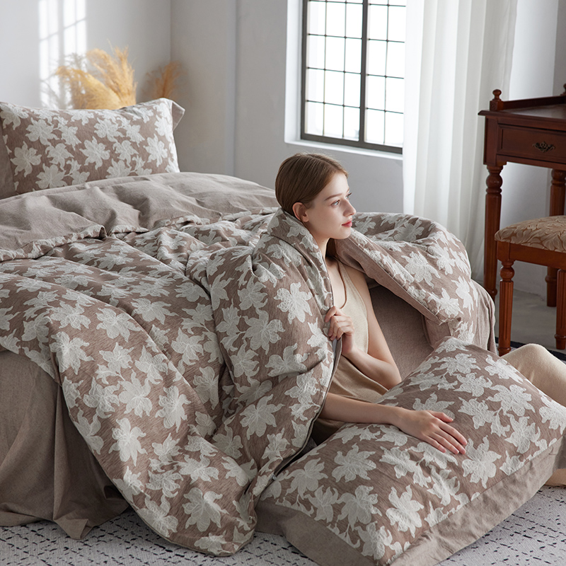 简家居2025新款20%亚麻80%棉混纺四件套-青枫 青枫咖啡色