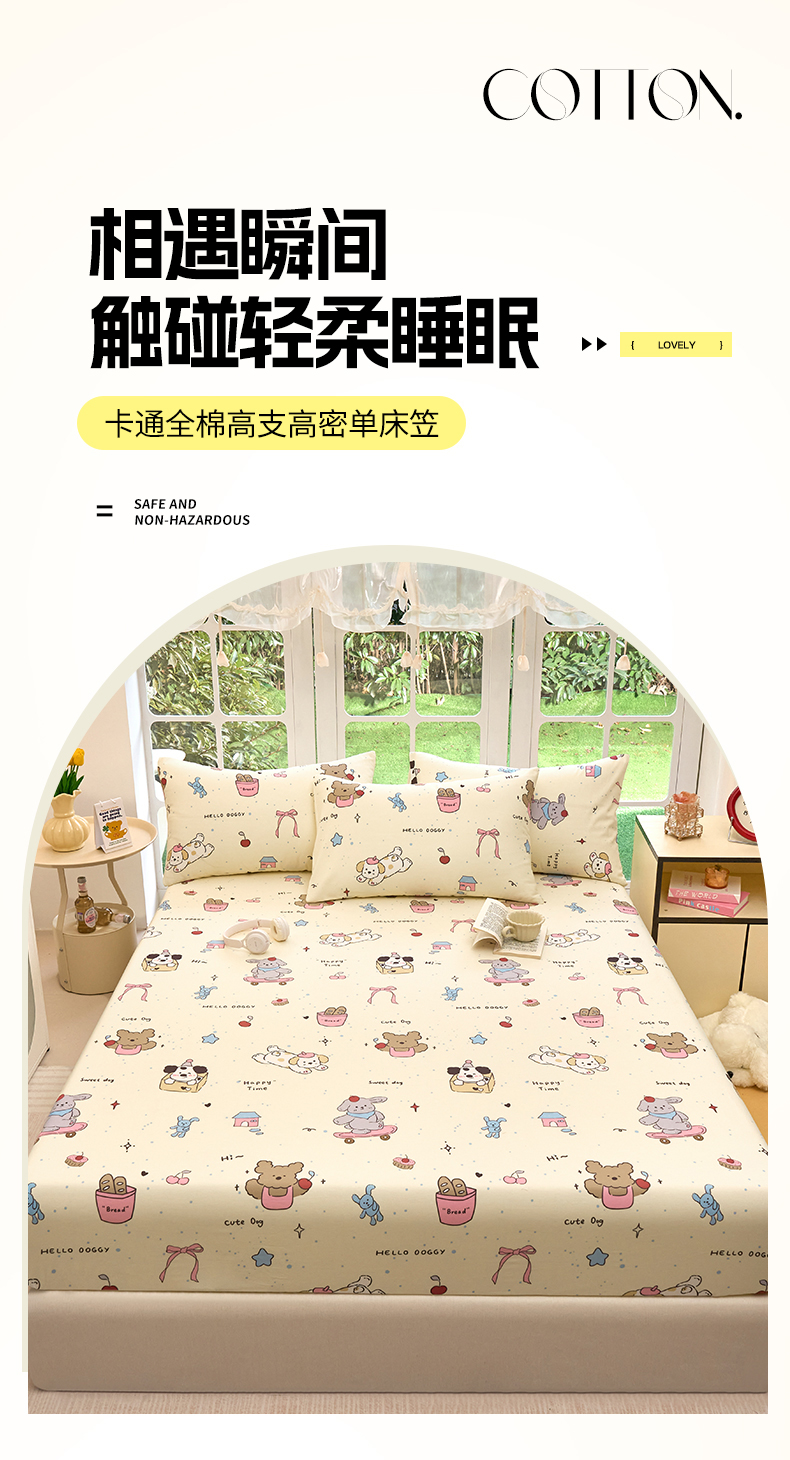 商品名称:(总)木堇家居 2025新款春夏全棉小清新卡通床单床笠枕套单品系列-床笠系列