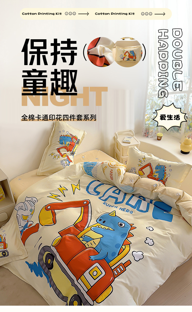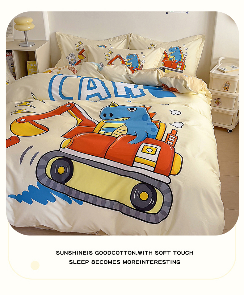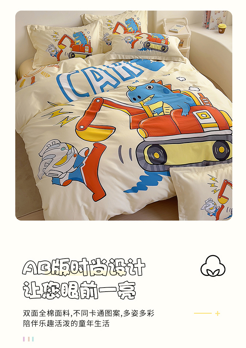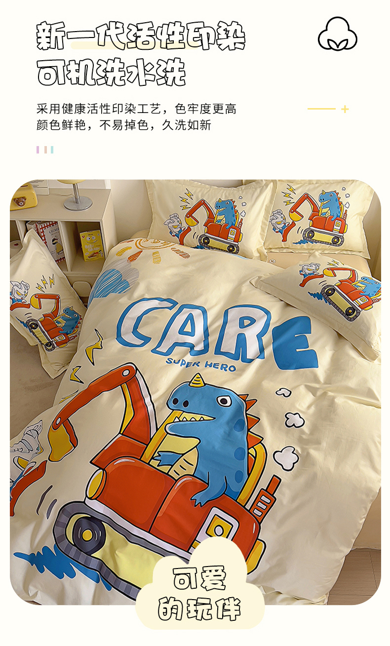 当前位置: 91家纺网 > 商品网购 > 床品套件 > 四件套 > 全棉普通四件套 > 浩诚 2025新款全棉大版卡通太空人宇航员小恐龙小汽车系列纯棉四件套-提供买家秀 恐龙挖掘机