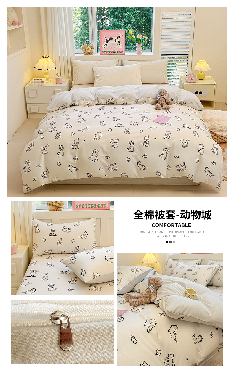• 91家纺网 家纺一手货源 找家纺 雯豆2025春夏新款全棉纯棉被套三件套学生成人被罩 全棉被套-动物城