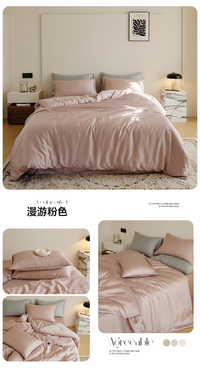 当前位置: 91家纺网 > 商品网购 > 床品套件 > 四件套 > 莱赛尔四件套 > EH家居 2025新款天丝纯色四件套系列 漫游粉色