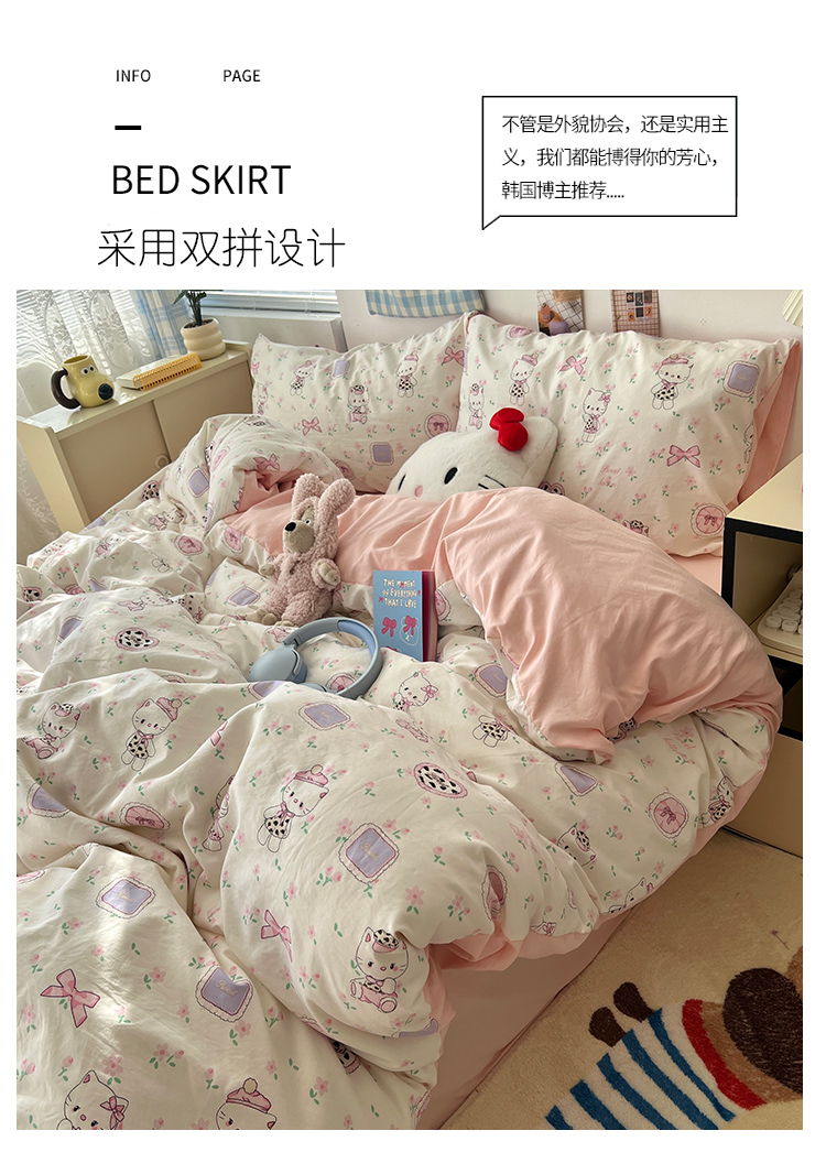 当前位置: 91家纺网 > 商品网购 > 床品套件 > 四件套 > 其它四件套 > 原素 2025软绵绵的双拼印花水洗棉四件套 碎花奶猫