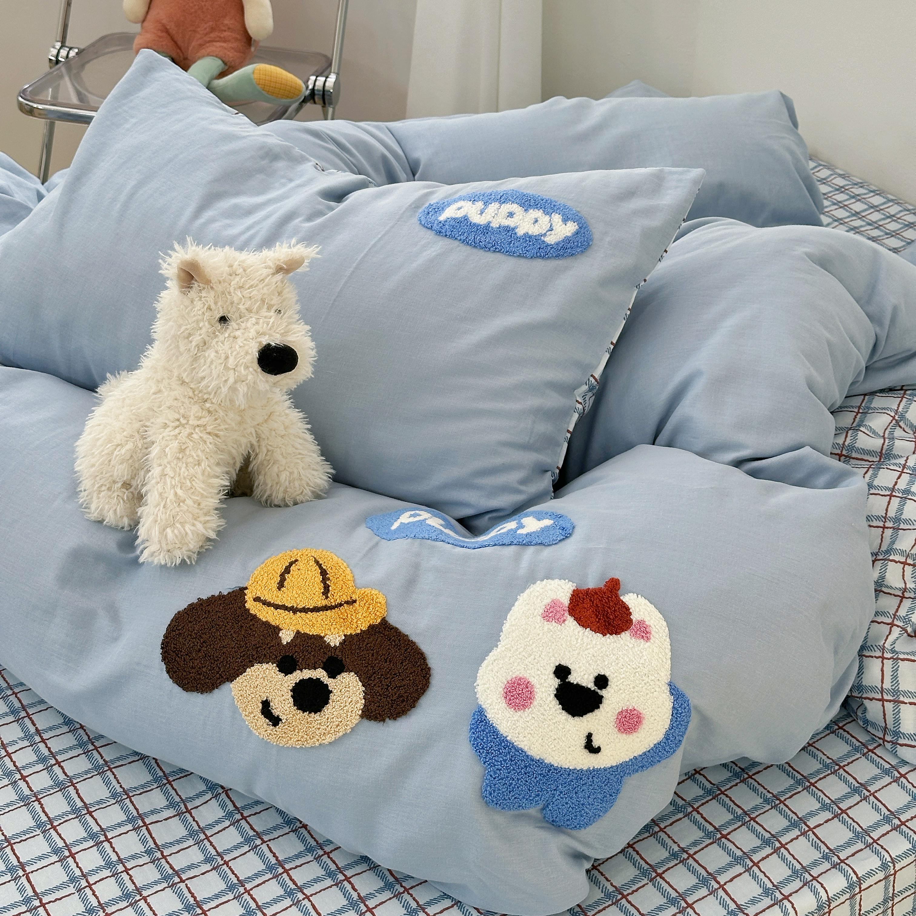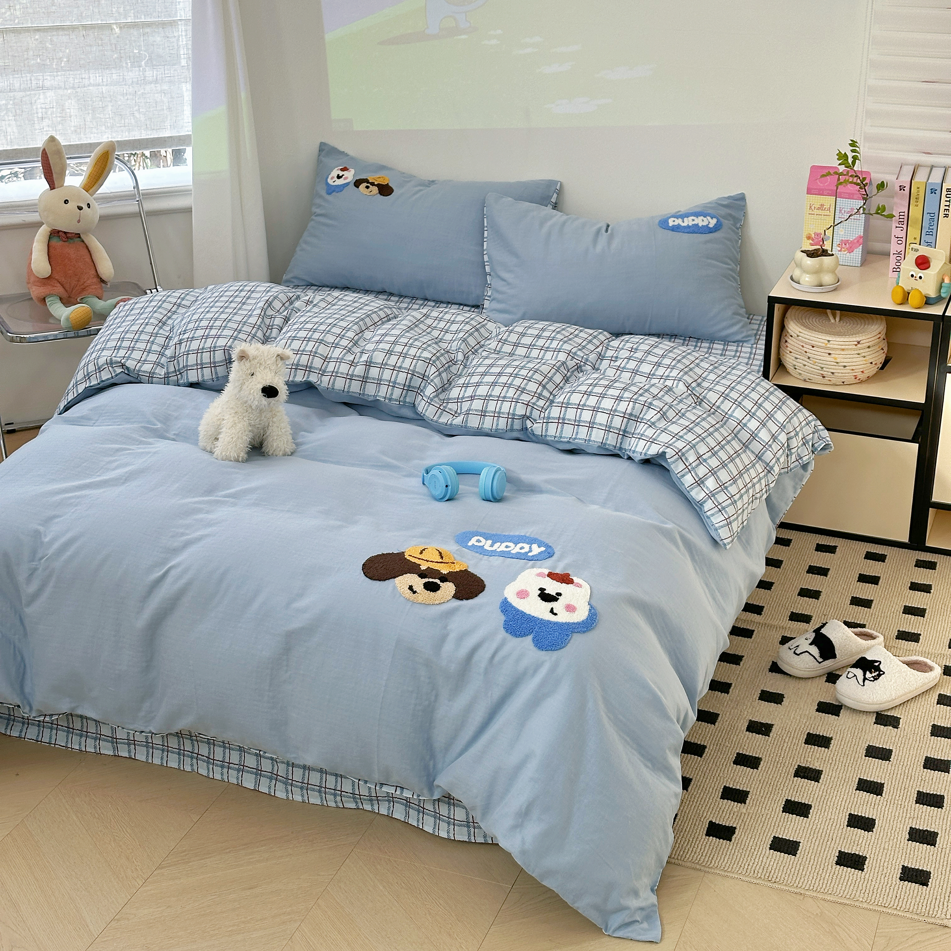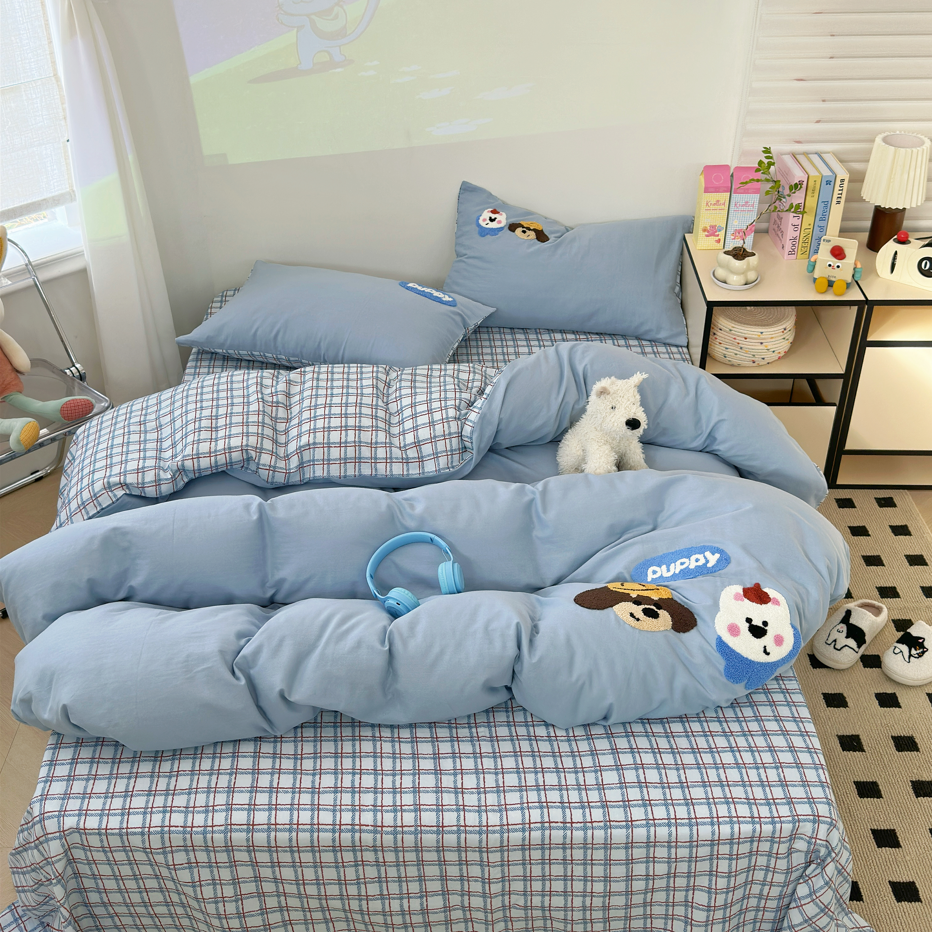 (总)珺柔家纺 2025新款全棉磨毛绣花四件套,风车小熊,海盐雪纳瑞,黑白熊猫,咖啡店小狗,腊肠三小只,萌神小喵,纽扣小熊,苹果小熊-咖,苹果小熊-蓝,夏日时光,小恶魔