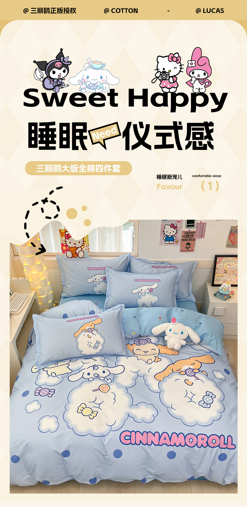 当前位置: 91家纺网 > 商品网购 > 床品套件 > 四件套 > 全棉普通四件套 > 博雅 2025新款三丽鸥大版印花全棉四件套专版花型 全棉大版(升级款信封枕)棉花糖玉桂狗