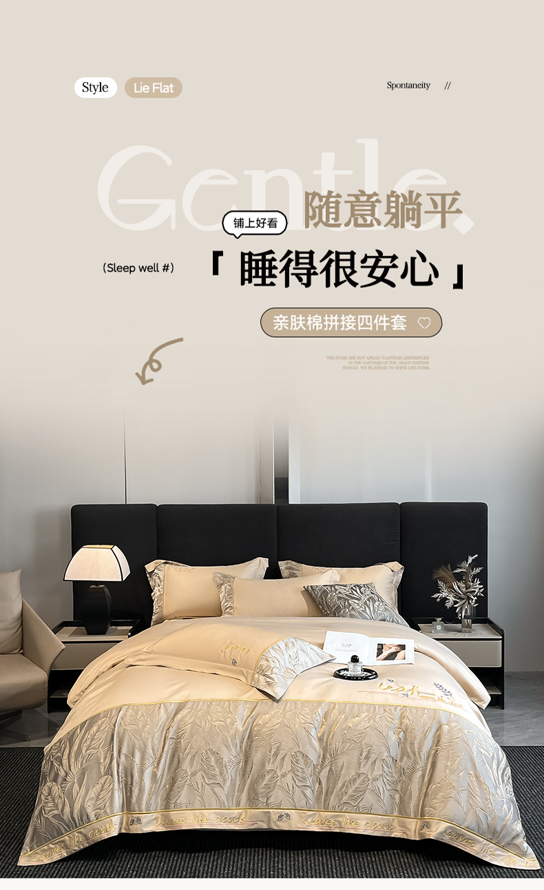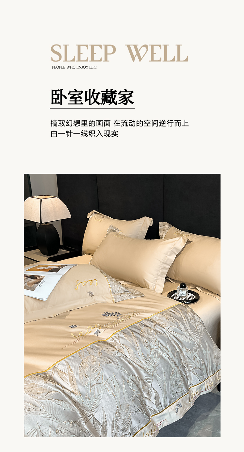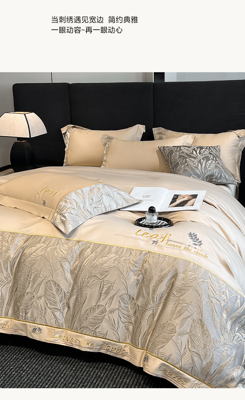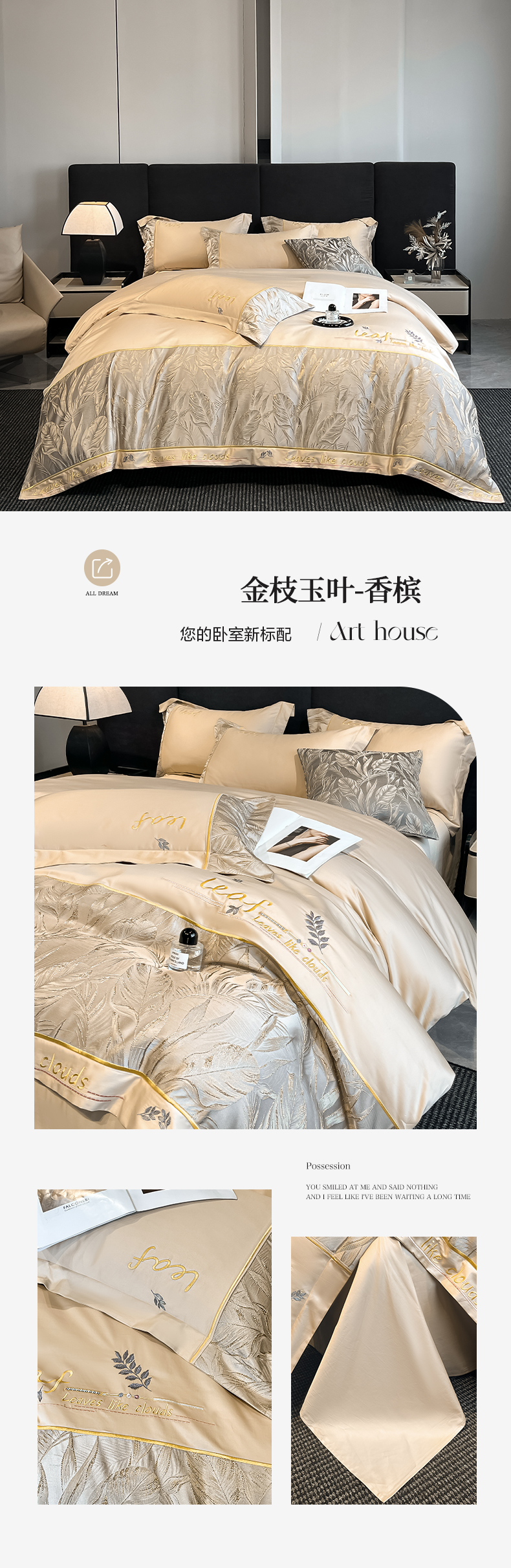 帝王家纺 2025春夏新款浮雕刺绣亲肤棉四件套-金枝玉叶 金枝玉叶-香槟